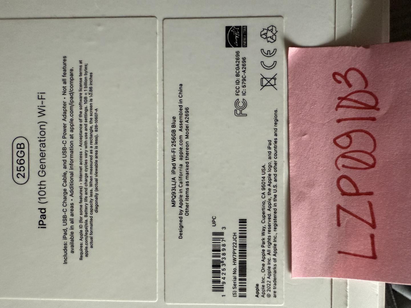 Wi-fi, 256GB, Blue iPad. Great condition.