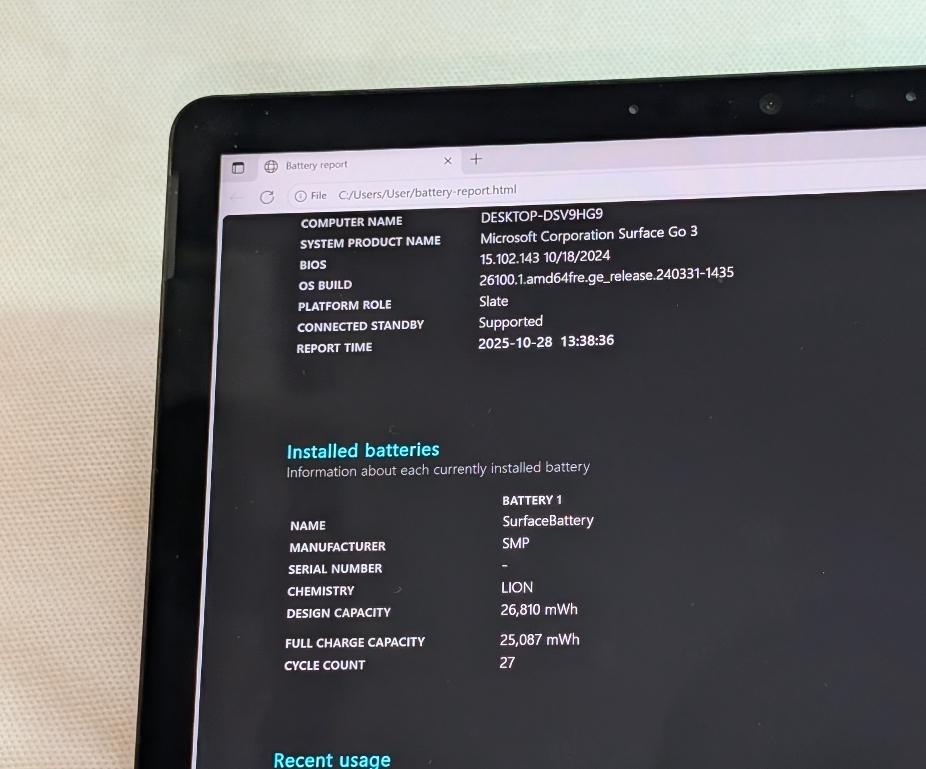 EXCELLENT BATTERY LIFE WITH ONLY 27 CHARGE CYCLES!