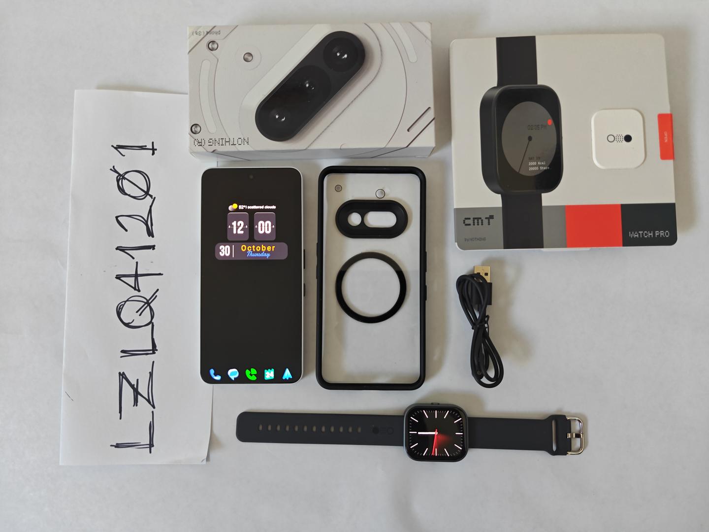 Available for sale is a Nothing Phone 3a and a Nothing CMF watch 1. See pictures for the stuff you'll be getting. All items come with their original boxes. The clear case I used for the Nothing 3a phone will be included.