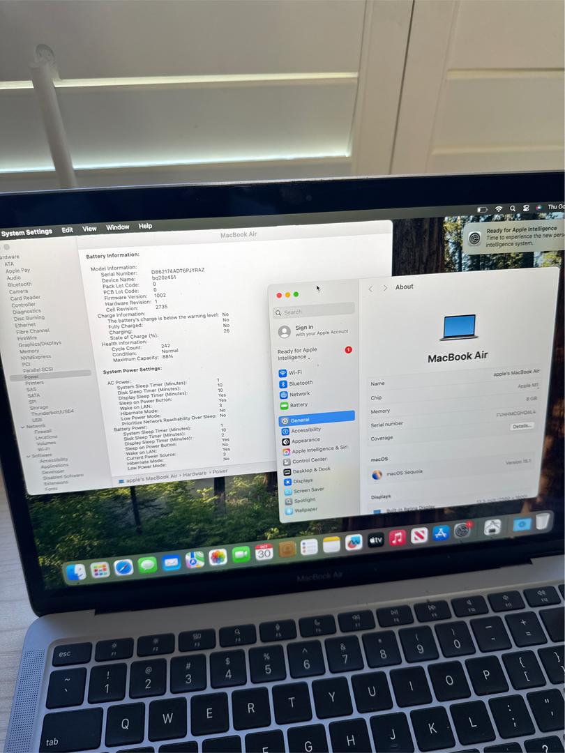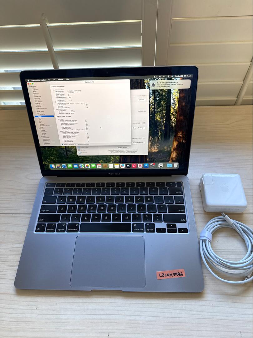 Used in good condition 2020 MacBook Air 13" M1 8GB 256GB with only 242 Battery Cycle