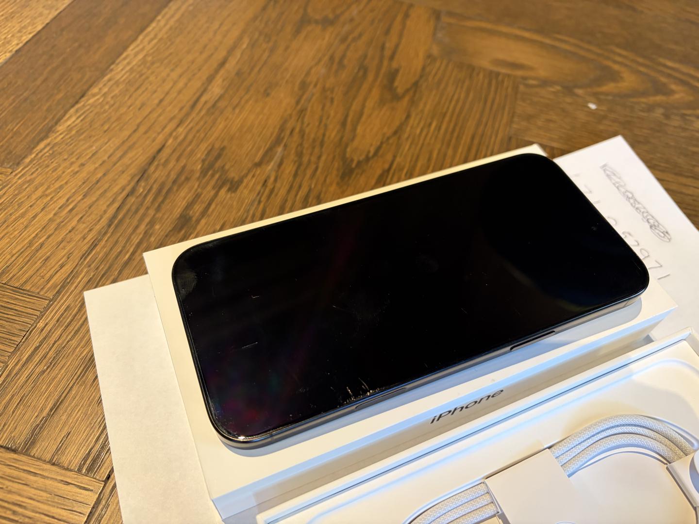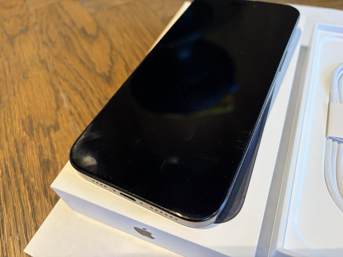Was in case entire time. Back is in excellent condition. Front has minor wear and tear. Very small scratches that are mostly hidden when screen is on. There are a couple scratches that are more noticeable towards the bottom of screen, and noticeable while screen is on from right angle. See pictures.