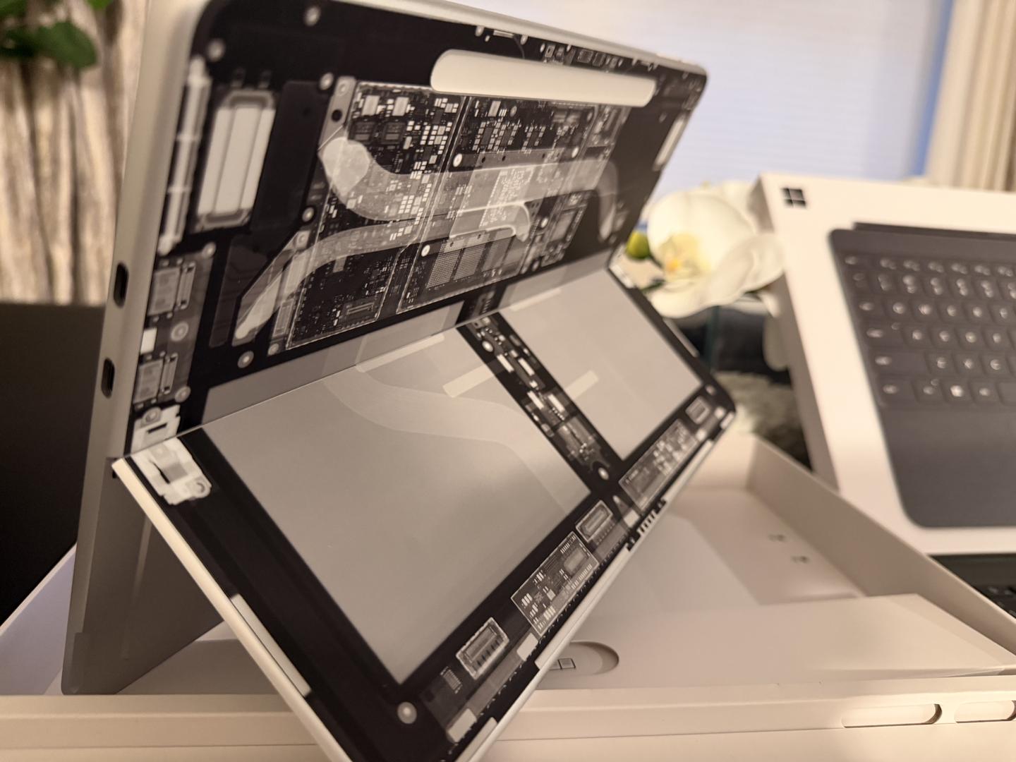 PRISTINE condition no scratches, dents, or signs of wear. The device has never been dropped and was always charged up to 80% to maintain battery longevity. A screen protector has been applied since day one and I will include the original box and cable. Purchased directly from the Microsoft Store, fully paid off, and covered by 2 years of Microsoft warranty, including accidental damage protection (a $150 value). The listing also includes the original Microsoft keyboard (a $150 add-on), as shown in the photos meaning you’re saving $300 total with these extras. The device will be shipped via UPS, same day or next business day, with signature required upon delivery for security. NOTE: THE BACK HAS A X-RAY SKIN FROM DBRAND!