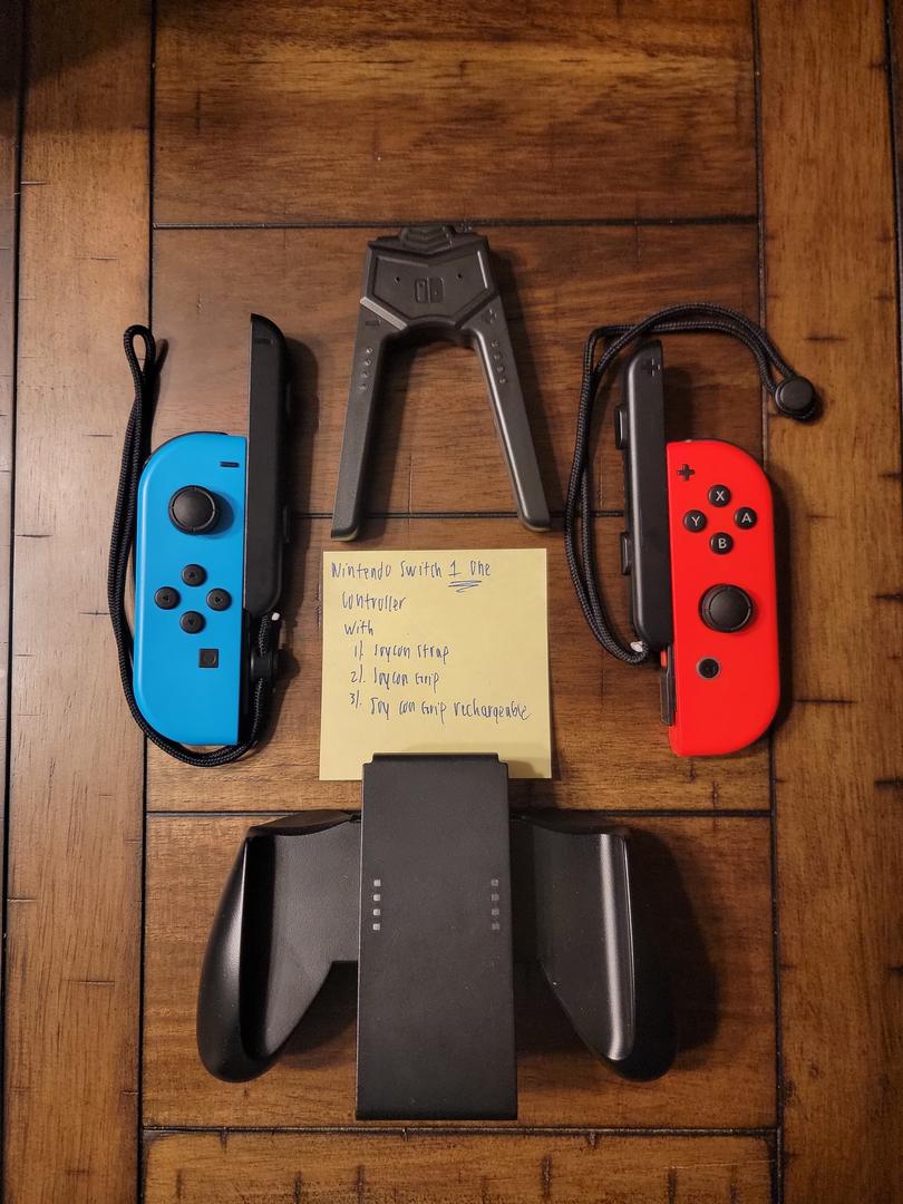 Switch 1* Controller (works with the Switch 2) with Two Different Joy Con Grips and Pair of Joy Con Straps