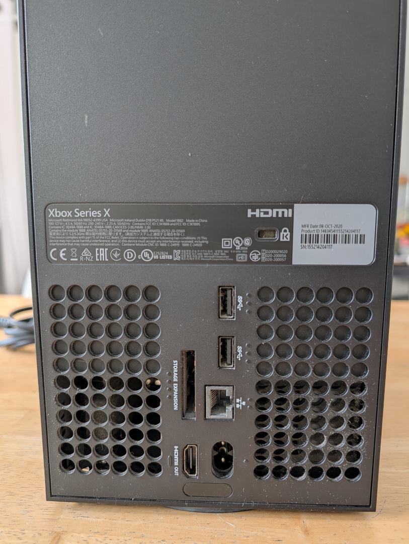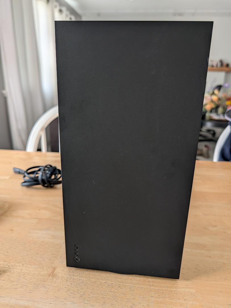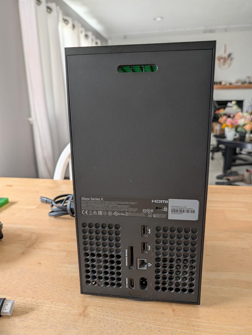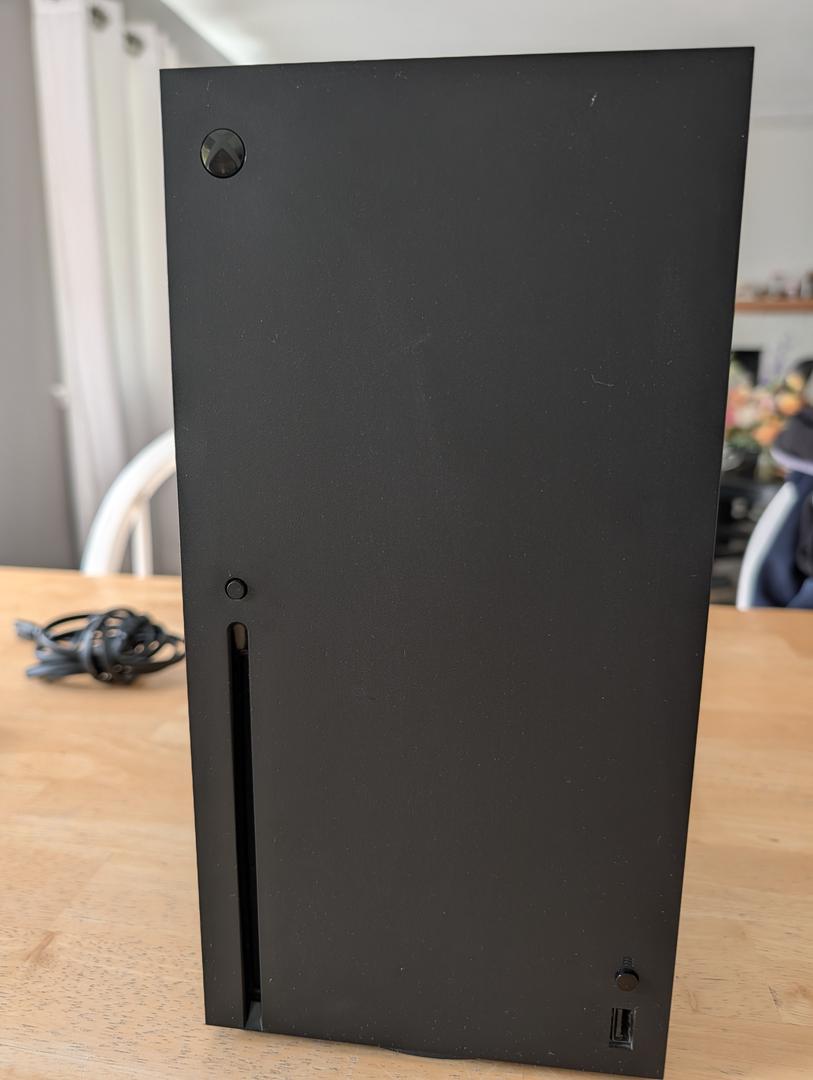 This Xbox series x is in great condition. It's in better than good condition, but not quite mint. It has no scratches or dings and is 100% functional. It comes with a new HDMI cable, the power cable, a controller with the rechargeable battery pack in it, and 3