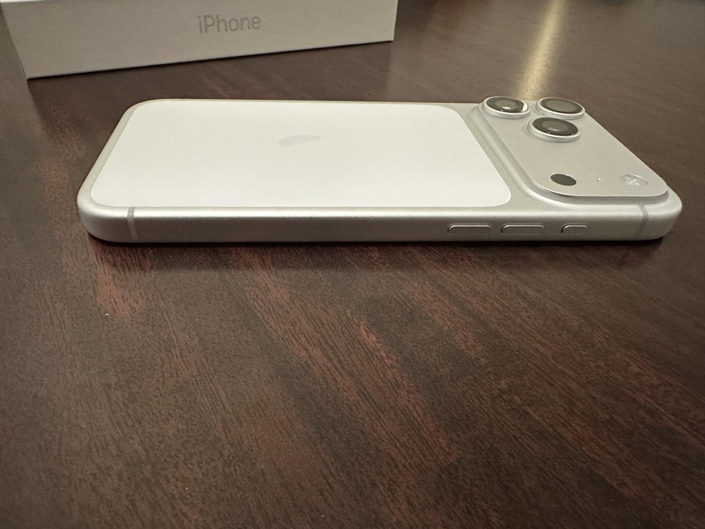 iPhone 17 Pro Max in Silver. 256 GB. Unlocked, no SIM restrictions. 100% Battery Health.