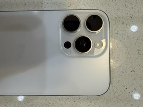 Visible scratches on top left of titanium frame.