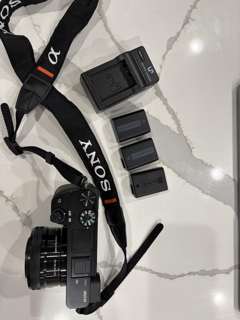 Great condition! Comes with 1 genuine Sony battery and 2 no brand amazon batteries as well as a no brand charger. Also comes with SELP 1650 lens and lens cover.