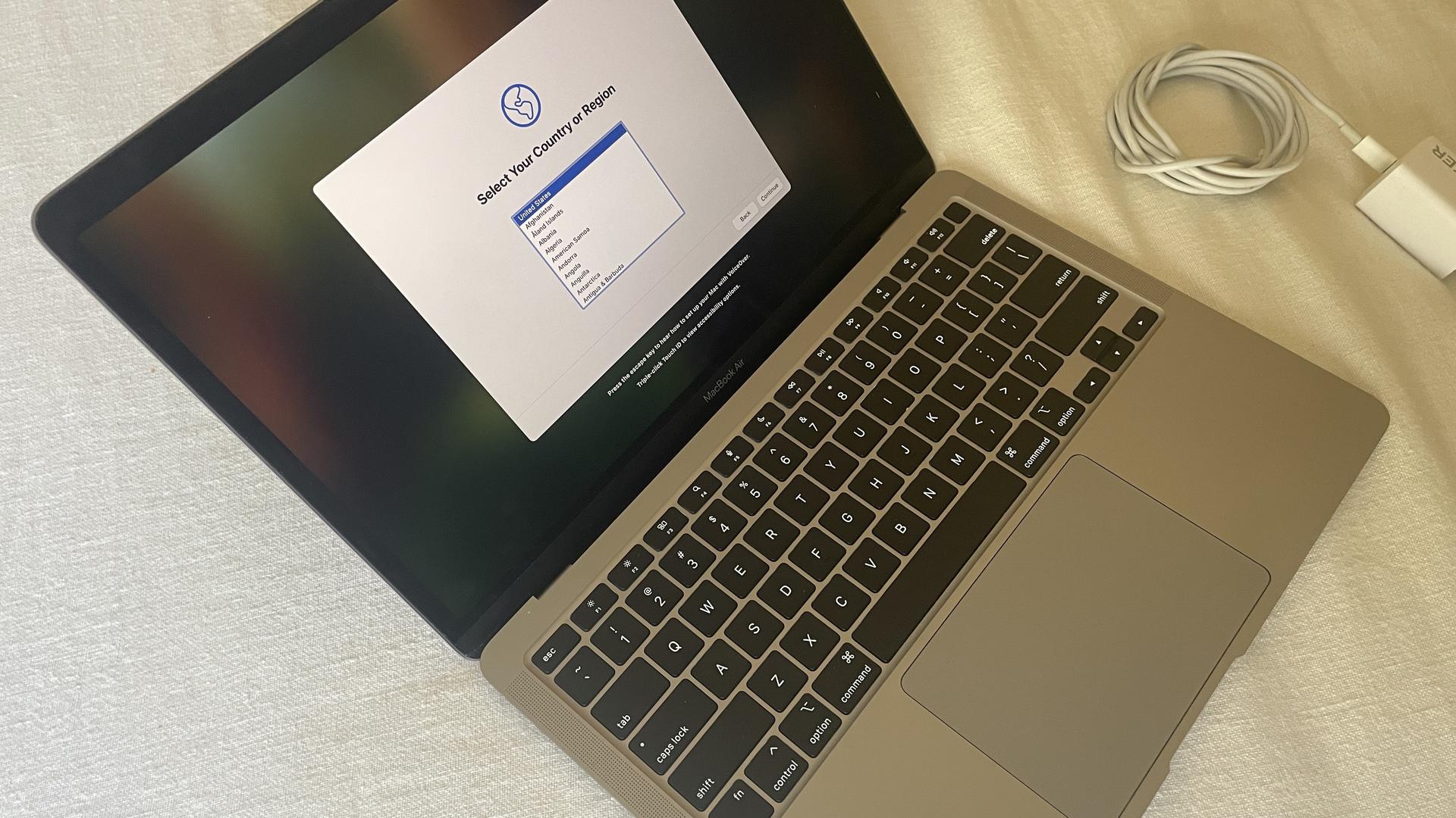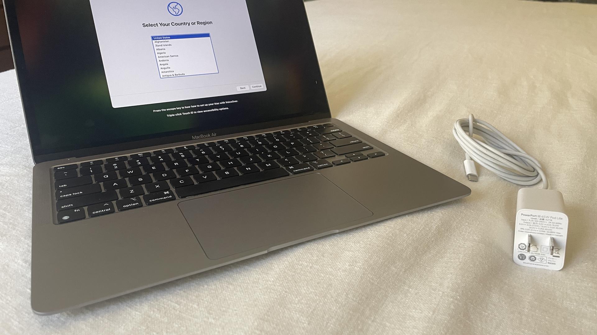 2020 M1 Macbook Air, 256GB, 8GB RAM, Great condition, generic power adapter included