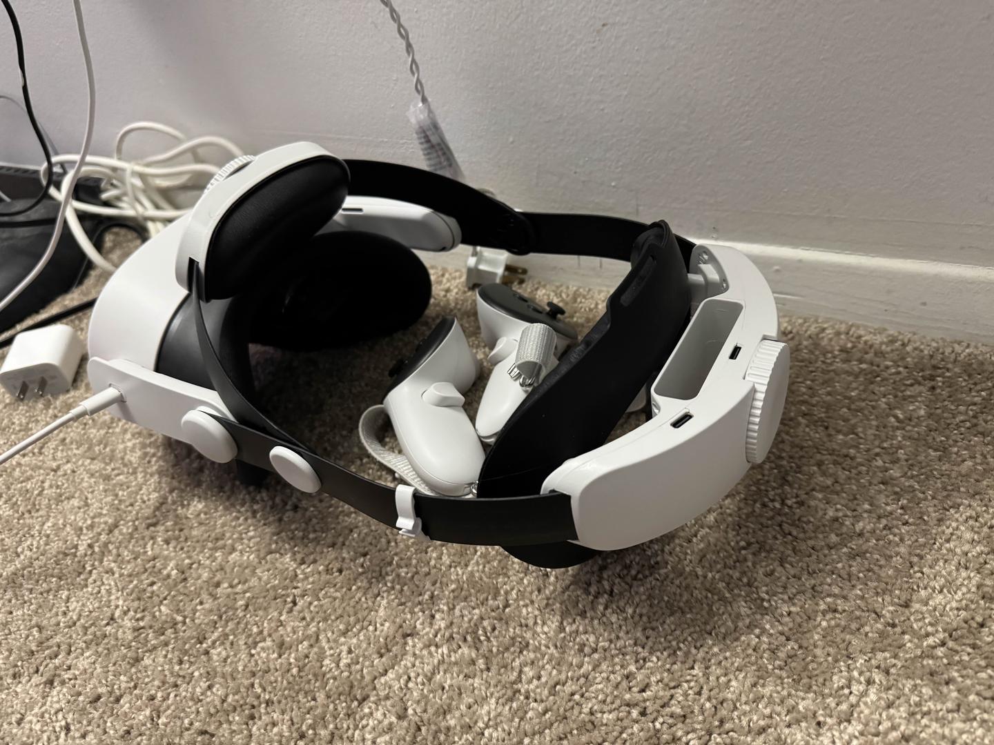 Comes with controller straps, advanced headstrap and charger