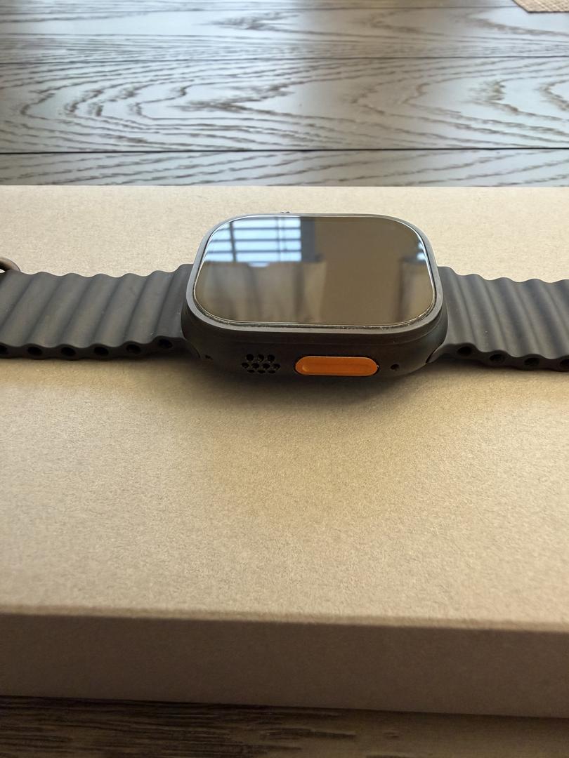 This Apple Watch Ultra 2 had a tempered glass screen protector placed on it the moment it was taken out of the box. A carbon fiber case was also placed on the outside for extra protection. The watch will ship with both of these items. The original box and charging cable are also included. The watch is in mint condition and has 100% battery health.