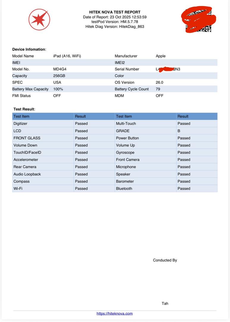 Sanitized, securely erased, and clean imei/serial number guaranteed