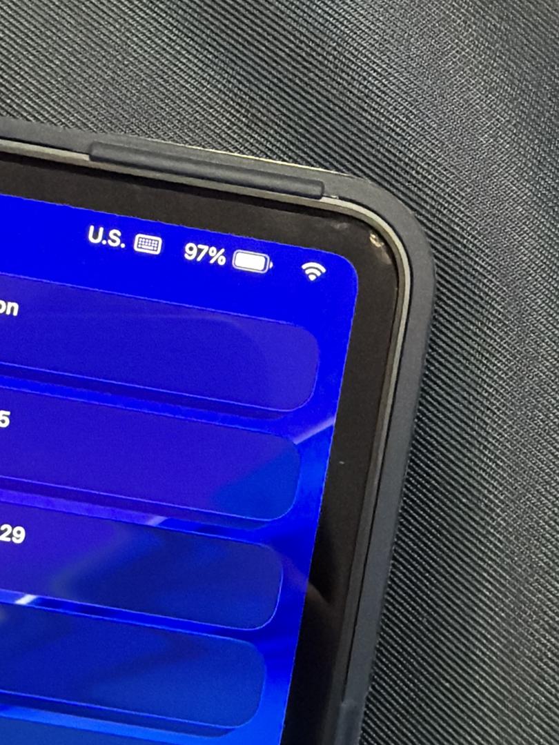 great condition. has been in a case and had a screen protector since opening. Does have a weird spot in the op right corner that I think is just the screen protector as pictured and circled. also has a track pad and palm rest cover on it