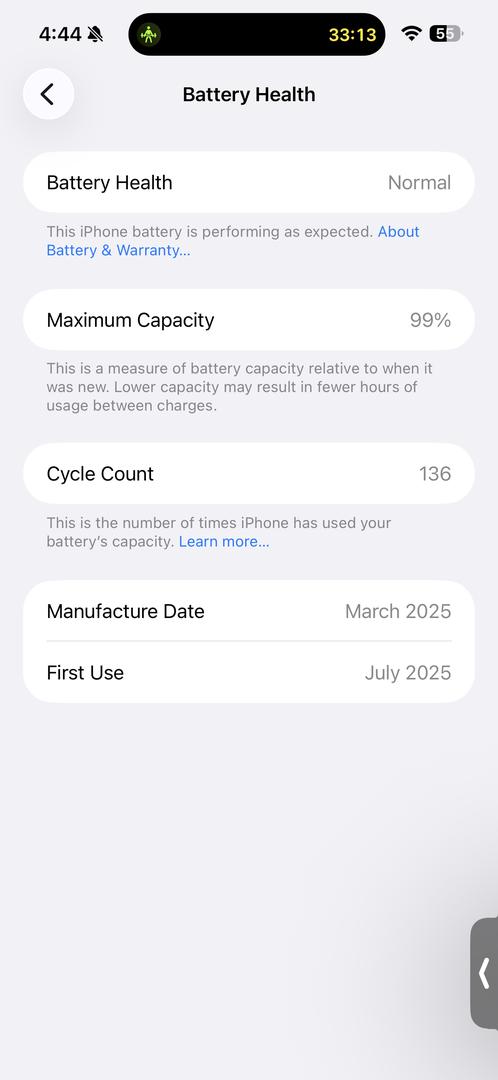 Just uploaded the screenshot of the battery health!