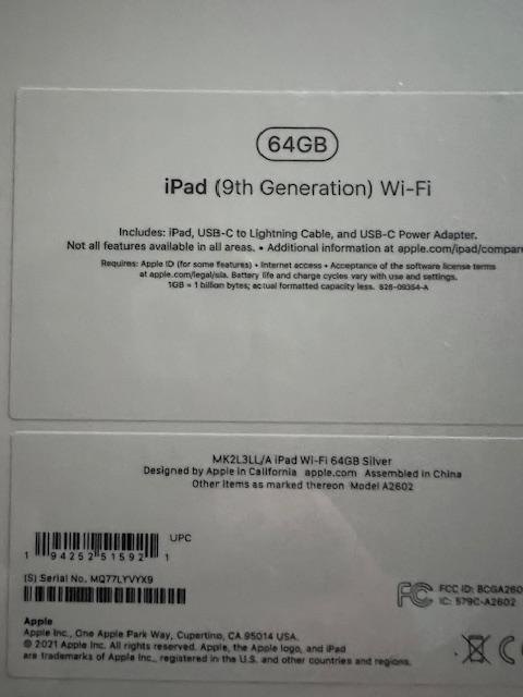 (NEW, UNOPENED) Apple iPad (9th Generation) 64GB Wifi only - Silver