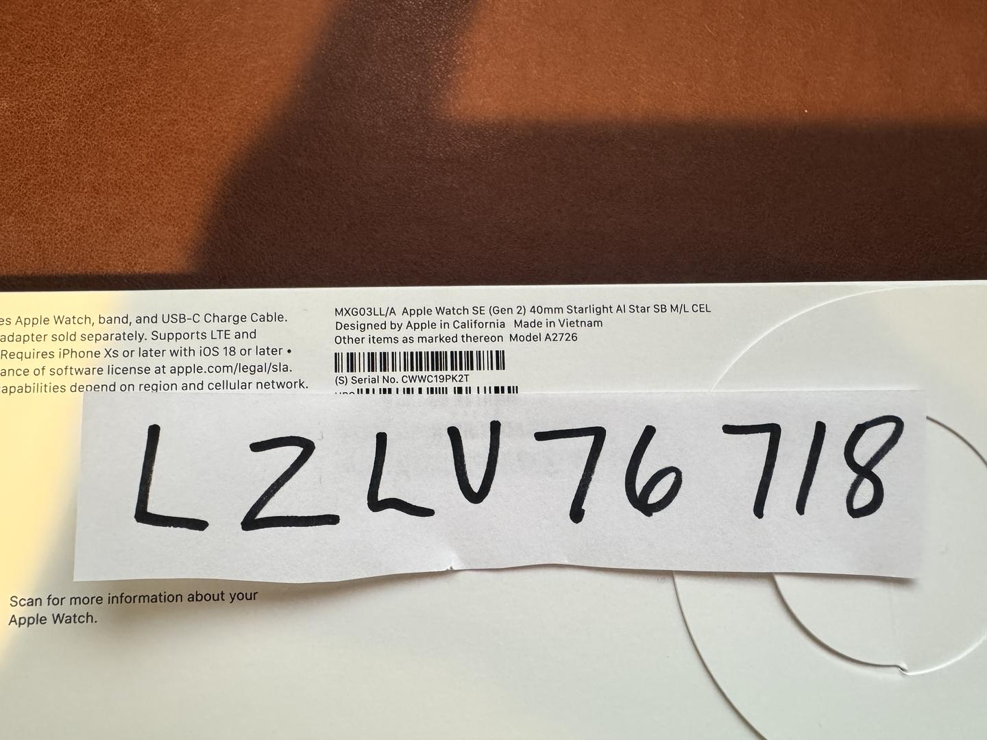 New Sealed Apple Watch SE (gen2) 40mm starlight Sports Band w/ Cellular ability