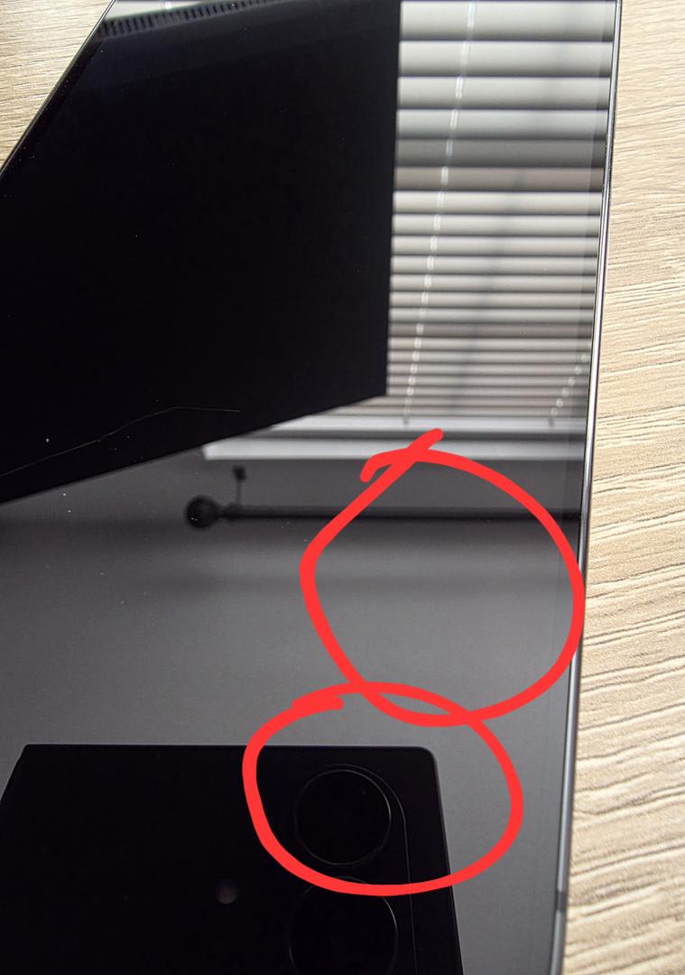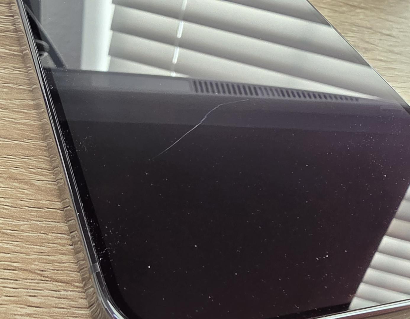 One scratch on screen that can be felt with fingernail (pictured). Also two minor scratched that are so faint I could not get in a picture (circled in picture). All were unable to be seen under a screen protector.