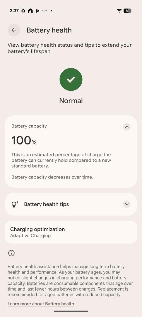 Battery health is at 100% (pictured).