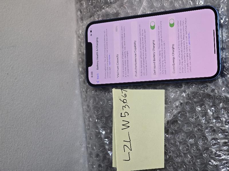 iPhone 13 128 GB Blue in Very Good Condition, Small scratches and scuffs on screen, back, and sides. Damage is pictured and purely cosmetic. Battery health is 88%, unlocked for use with any carrier. IMEI is clean and ready for activation. Kept well in screen protector and case.