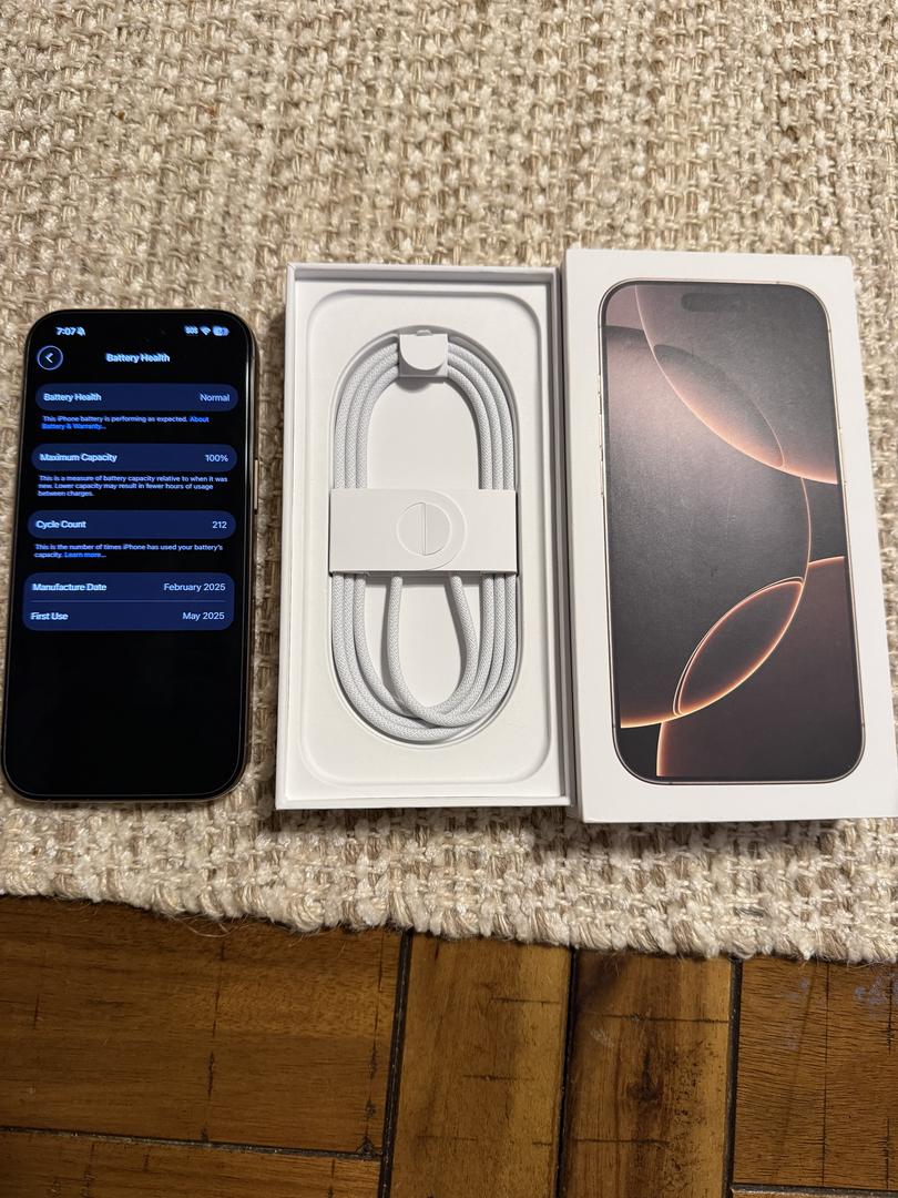 iPhone 16 pro. No signs of wear or tear. Does come with the screen protector and the box along with the charging cord.