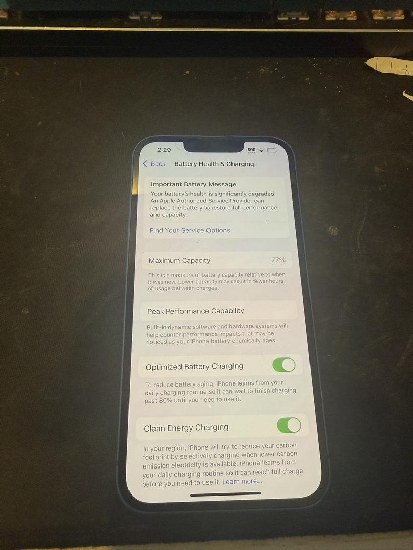 phone is in great condition screen is flawless no chips or cracks, frame of the phone has slight fading by charging port. Phone has 77% battery health which is why it’s priced low.