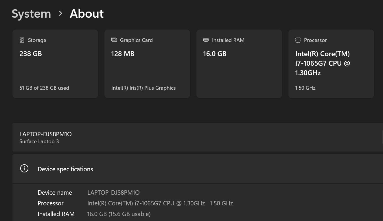 MICROSOFT SURFACE LAPTOP 3 1872 | CORE I7-1065G7 1.3GHZ | 256gb | 16GB RAM | WIN11