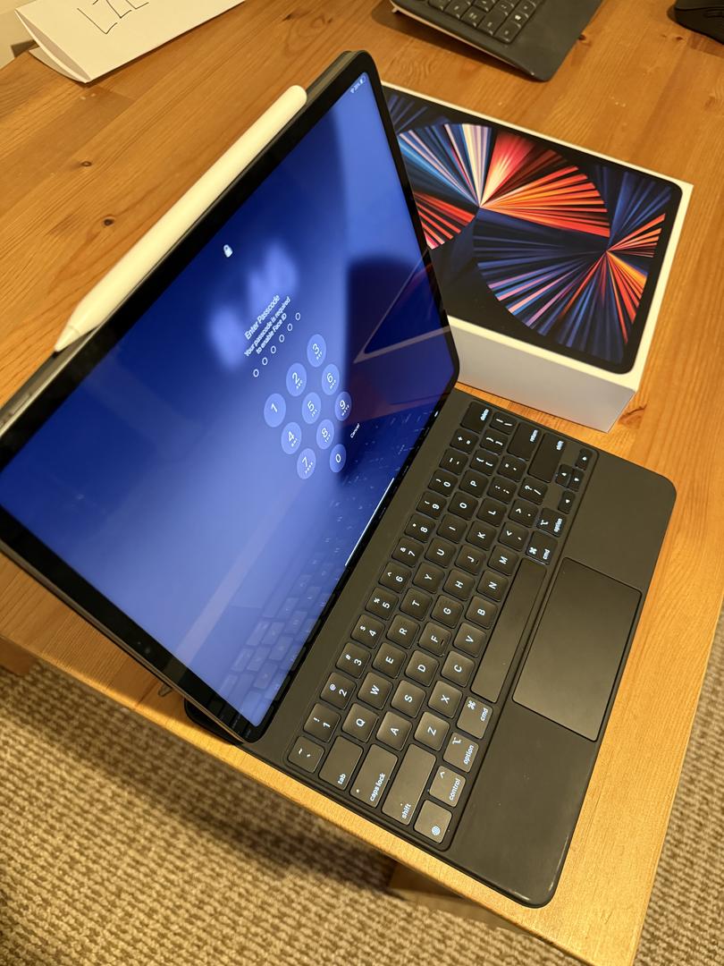 Apple iPad Pro 2021 (M1, 5th Generation) Magic Keyboard included.
