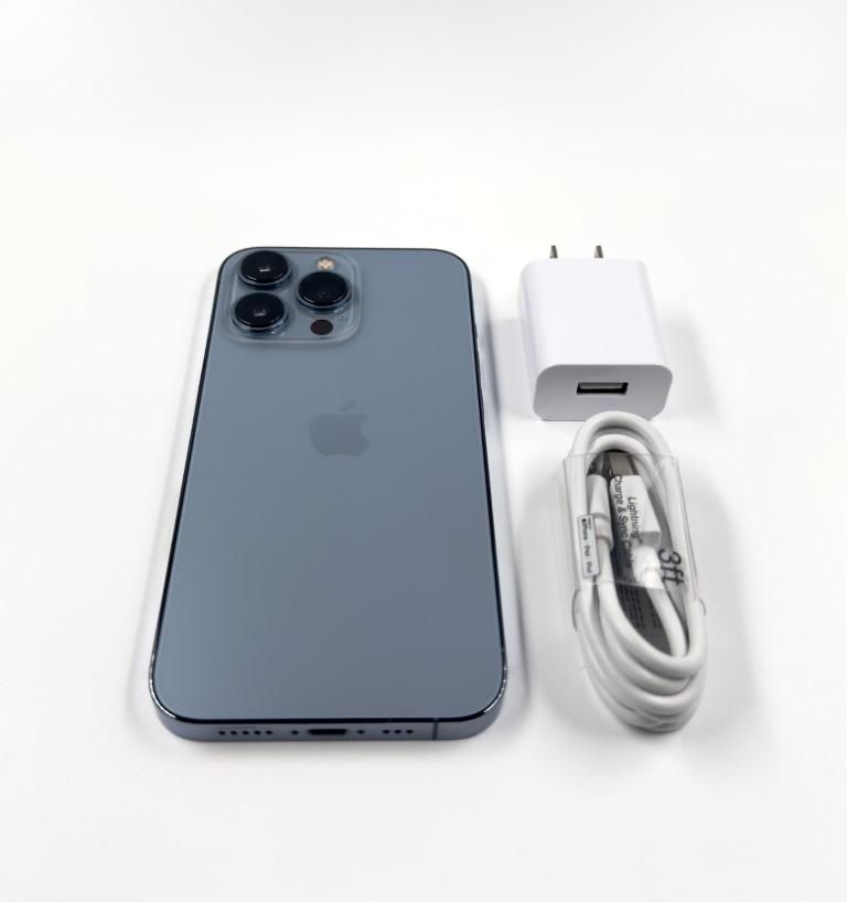 Apple iPhone 13 Pro 512 GB A2483 for Verizon - Sierra Blue. Phone has been tested by our team to ensure it is 100% fully functional and works perfectly. ESN checked and is clean and ready for activation. No SIM card included. Listing does include a wall charger, USB cable, and our 60 day warranty.
