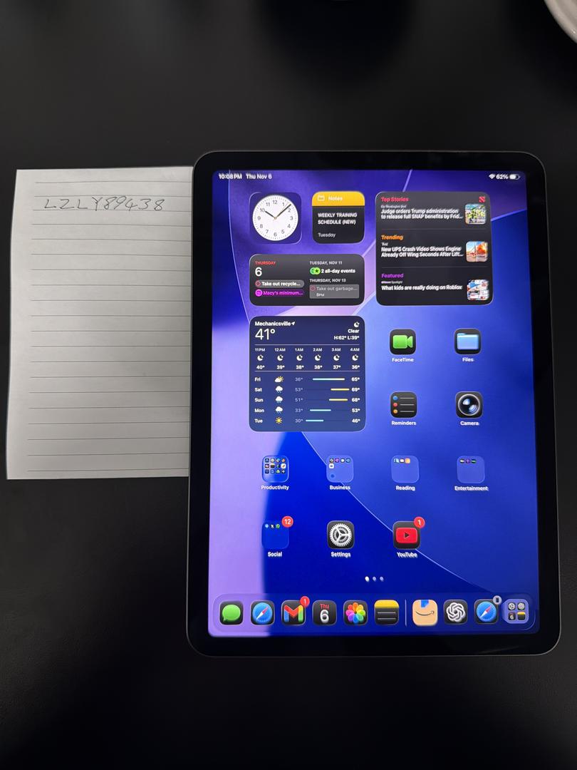 • Model: iPad Air (5th Gen) 11” Wi-Fi