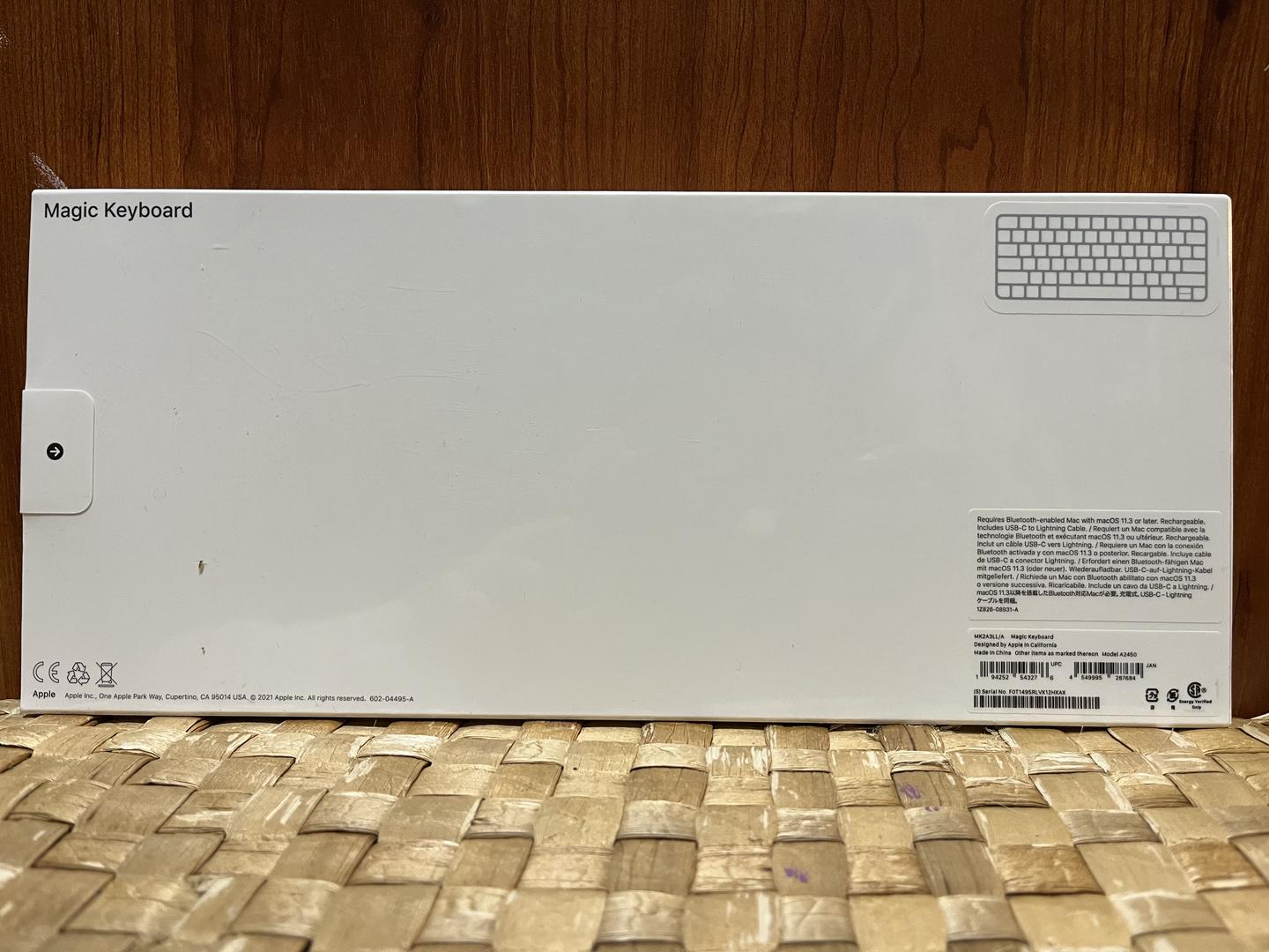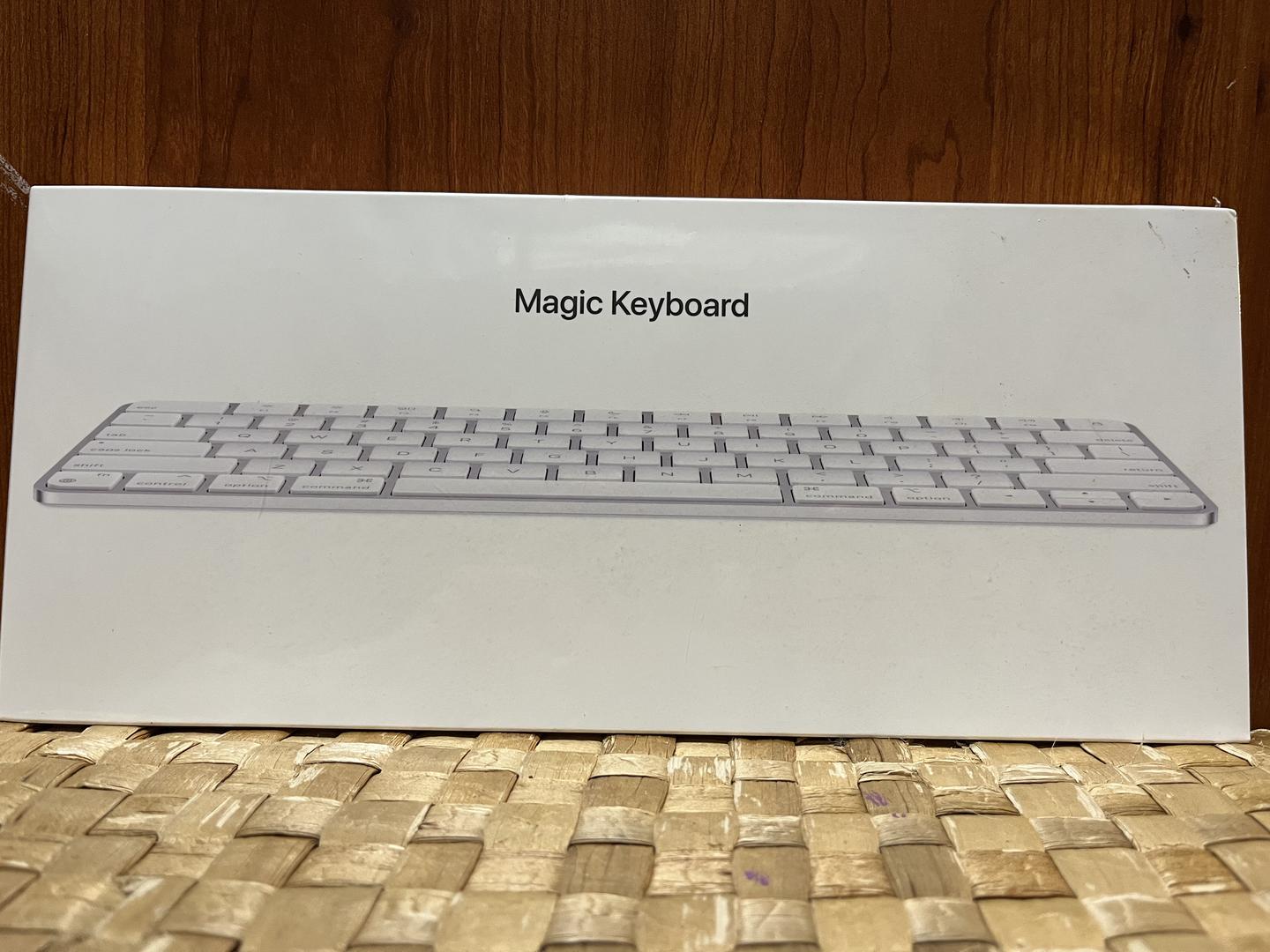 This Apple Magic Keyboard is in brand new condition, still sealed in its original plastic wrapping. This is the base model, and does not include a numeric keypad or touch ID sensor.