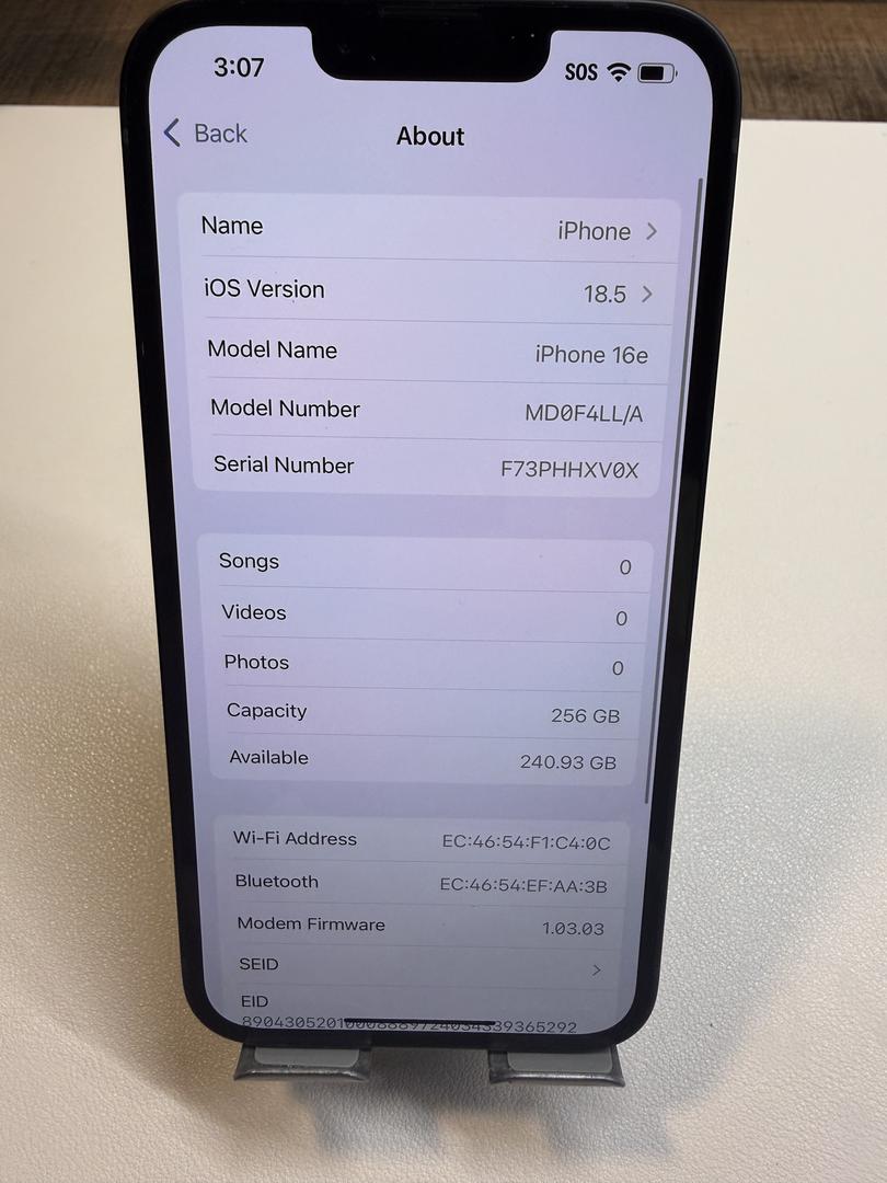 VERY GOOD Apple iPhone 16e 256GB 0575