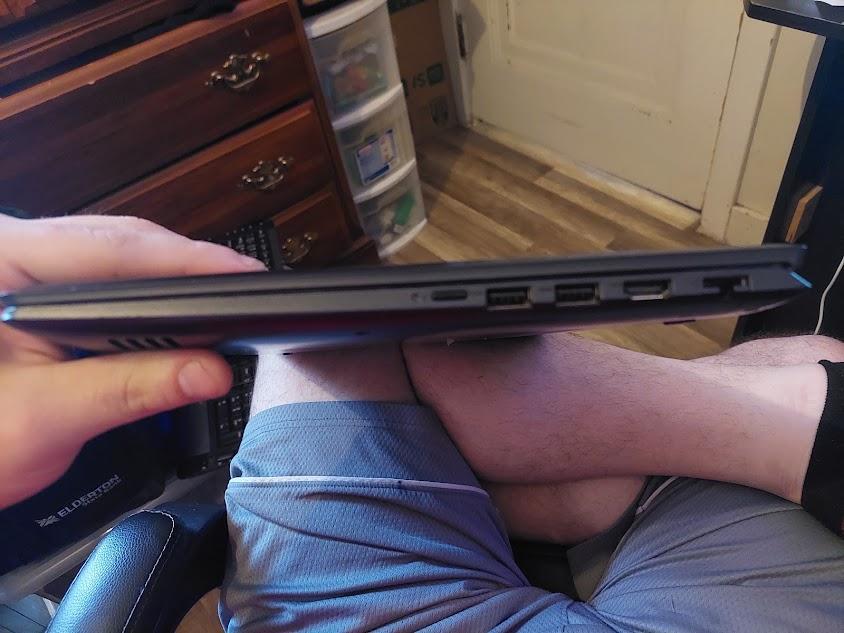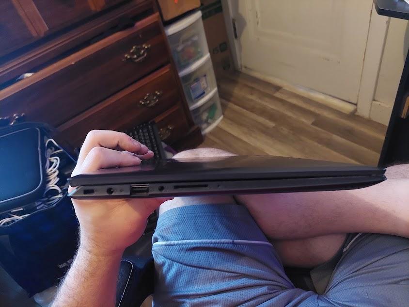 Has Faulty battery that to use laptop, charger needs continuously plugged in. Back cover is scratched. Chip on bottom left-hand corner near keyboard. Works well above all else. Windows 10 Compatible, 256 GB Storage Capacity.