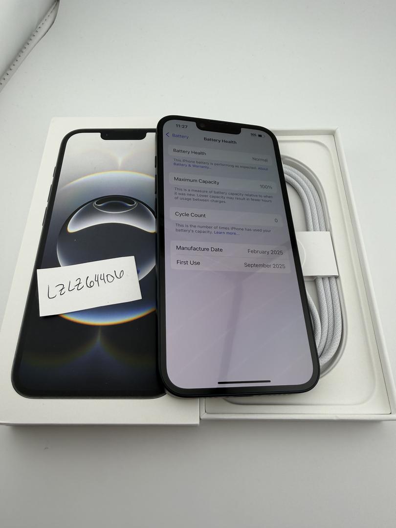 The phone's battery shows a 0 cycle count (basically new)
