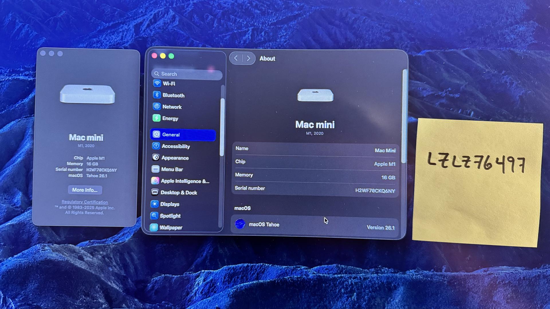 This is a 2020 M1 Mac Mini with almost zero use. No modifications. MacOS 26 Tahoe, reset to factory. Apple original power cable included. Case is pristine, no signs of wear. 16 GB memory and 256 GB hard drive. Shipping in US included.