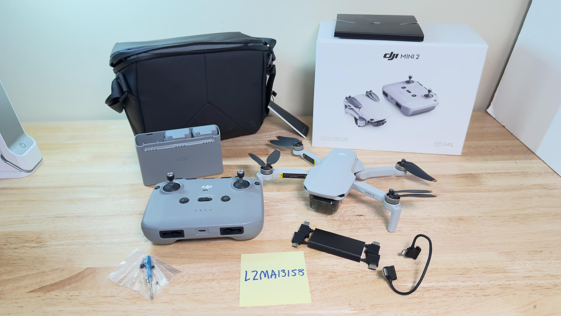 DJI Mini 2 with 2 batteries, multiple battery charger, and remote