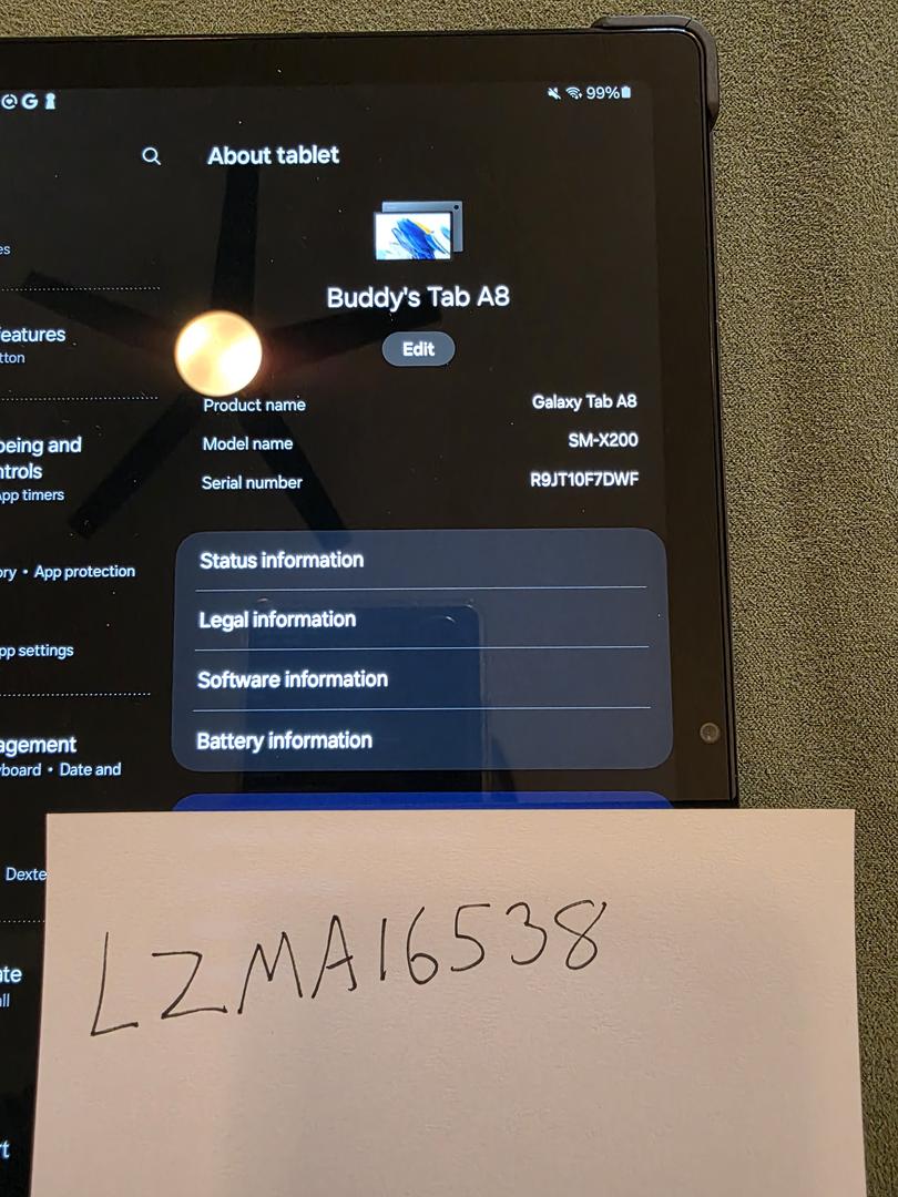 128gb Galaxy Tab A8, used by an adult in a non-smoking home. No cracks, dents, or scratches.