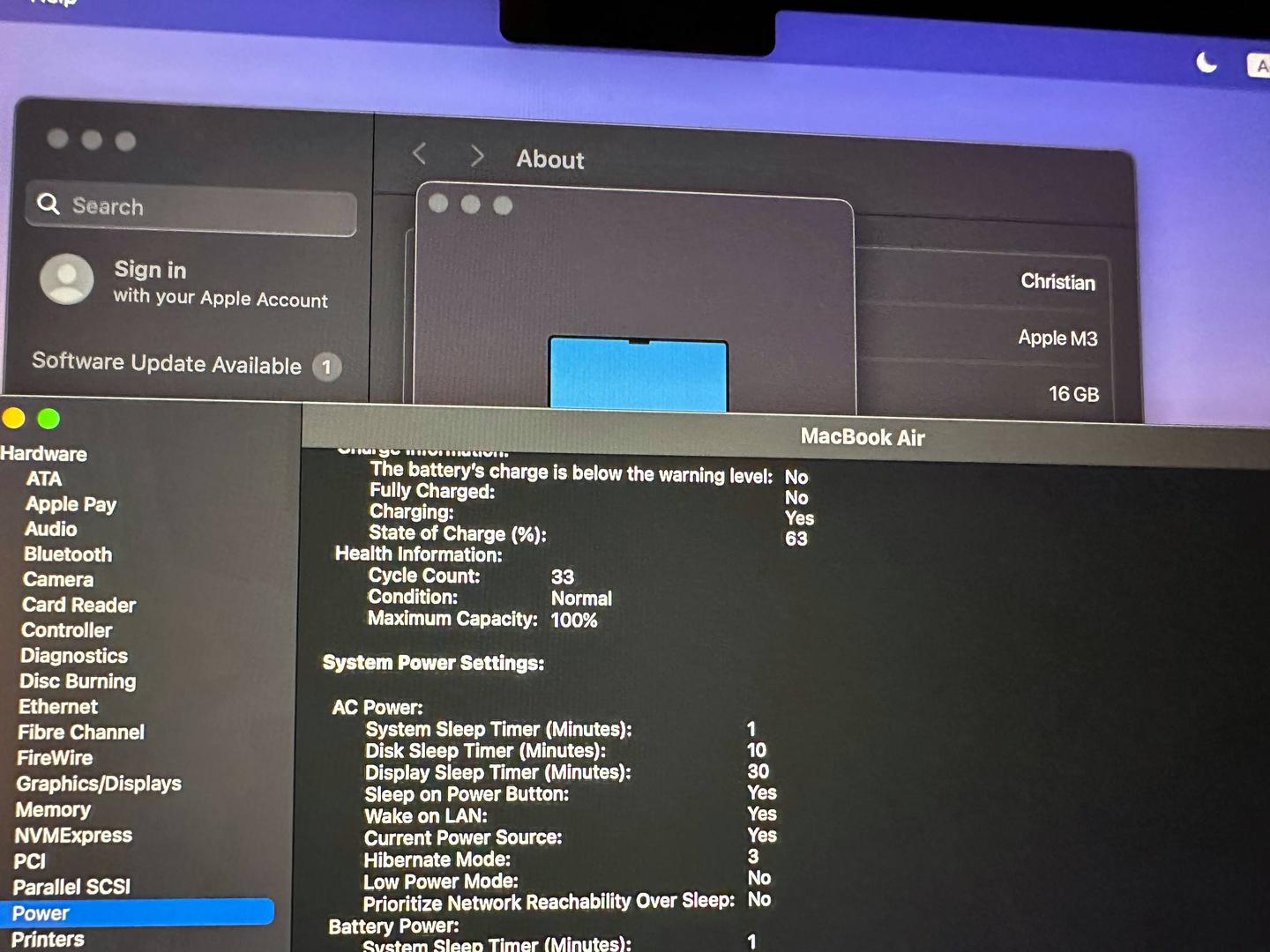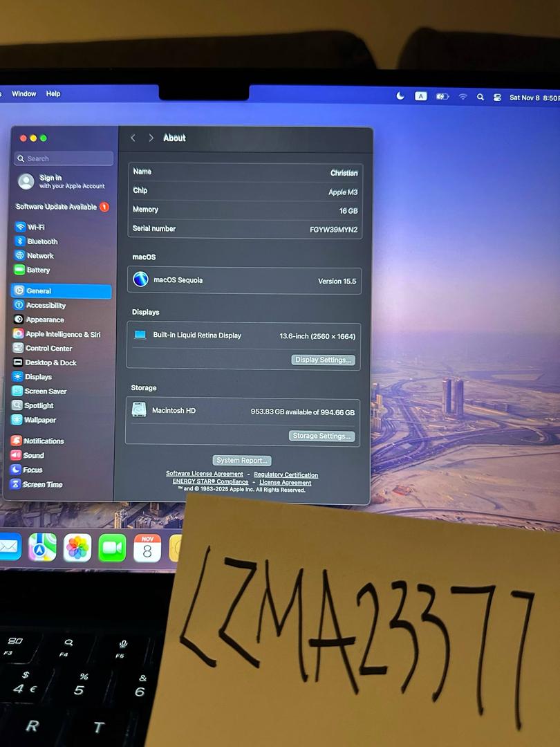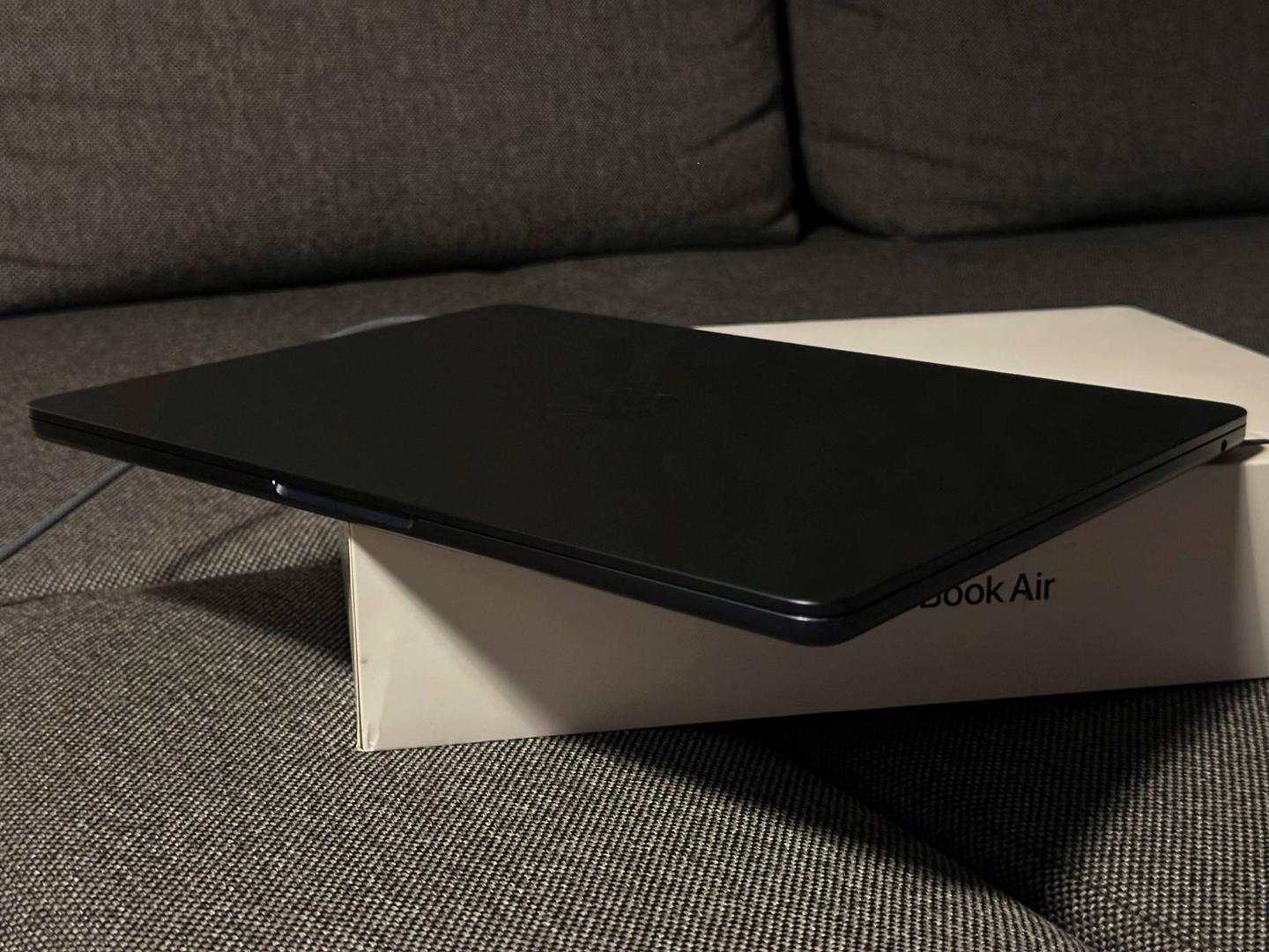 MacBook Air M3 in Midnight color upgraded with 16GB RAM and a 1TB SSD.