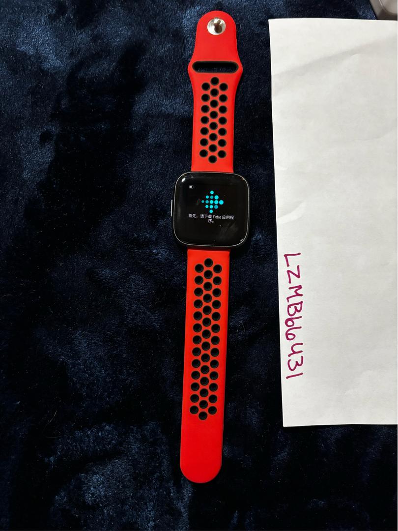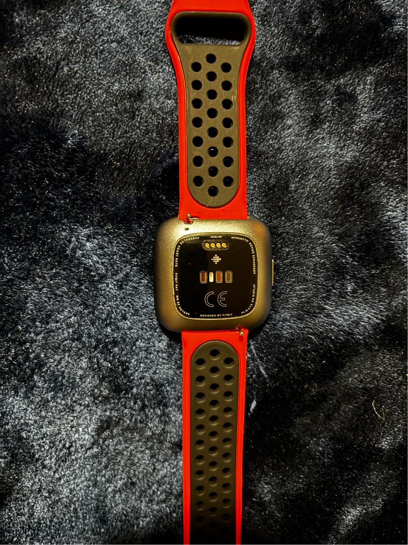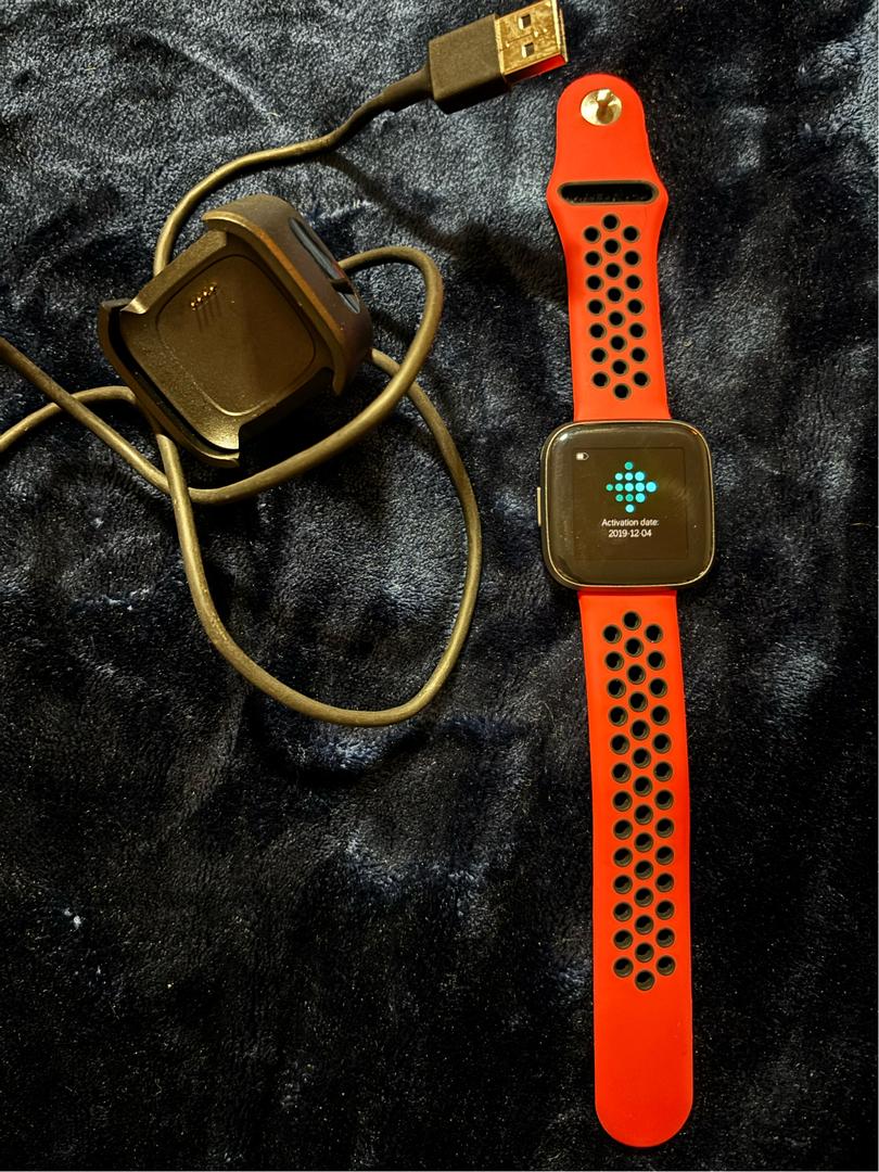 Black Fitbit Versa 2 with Band and charger