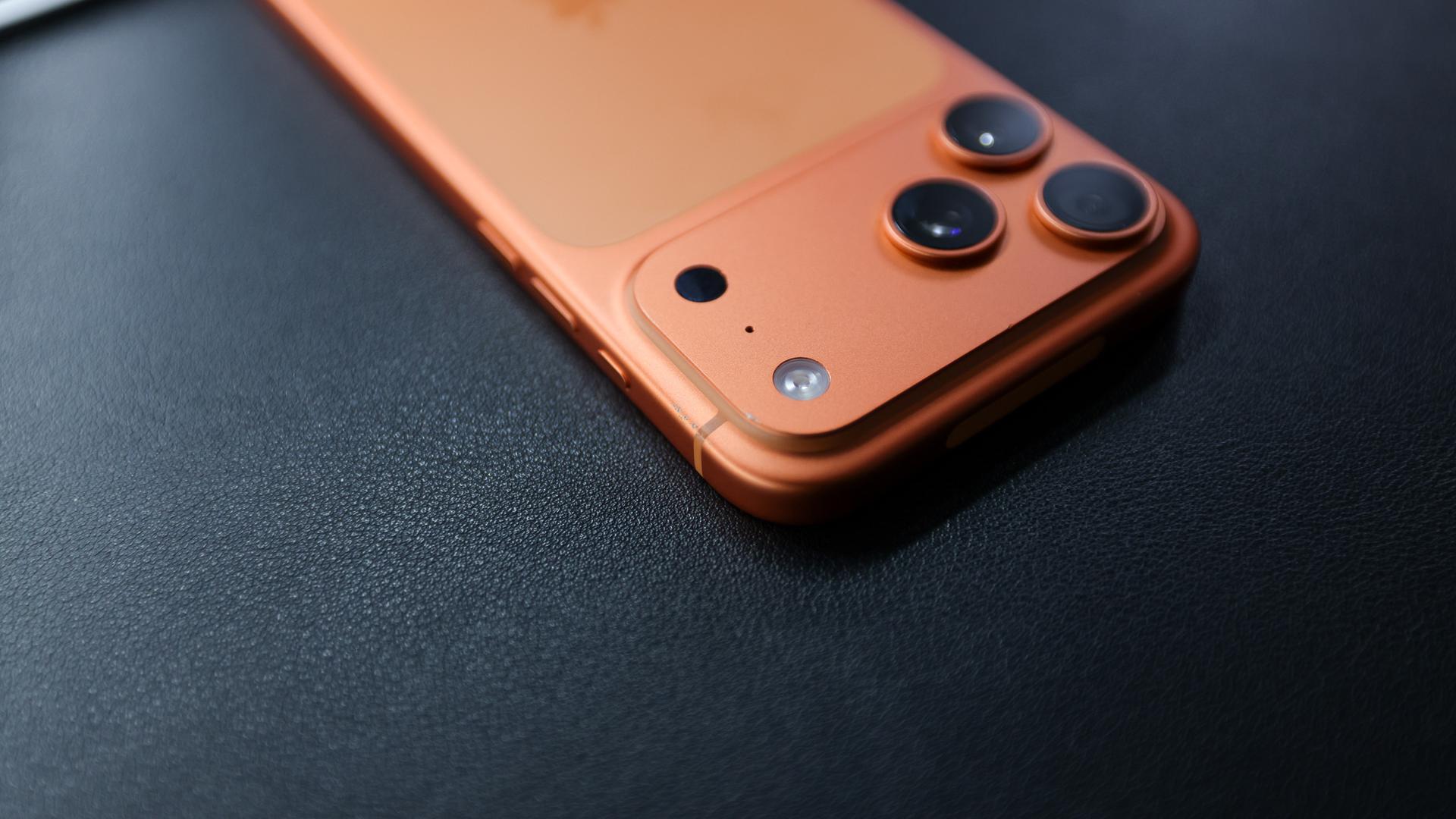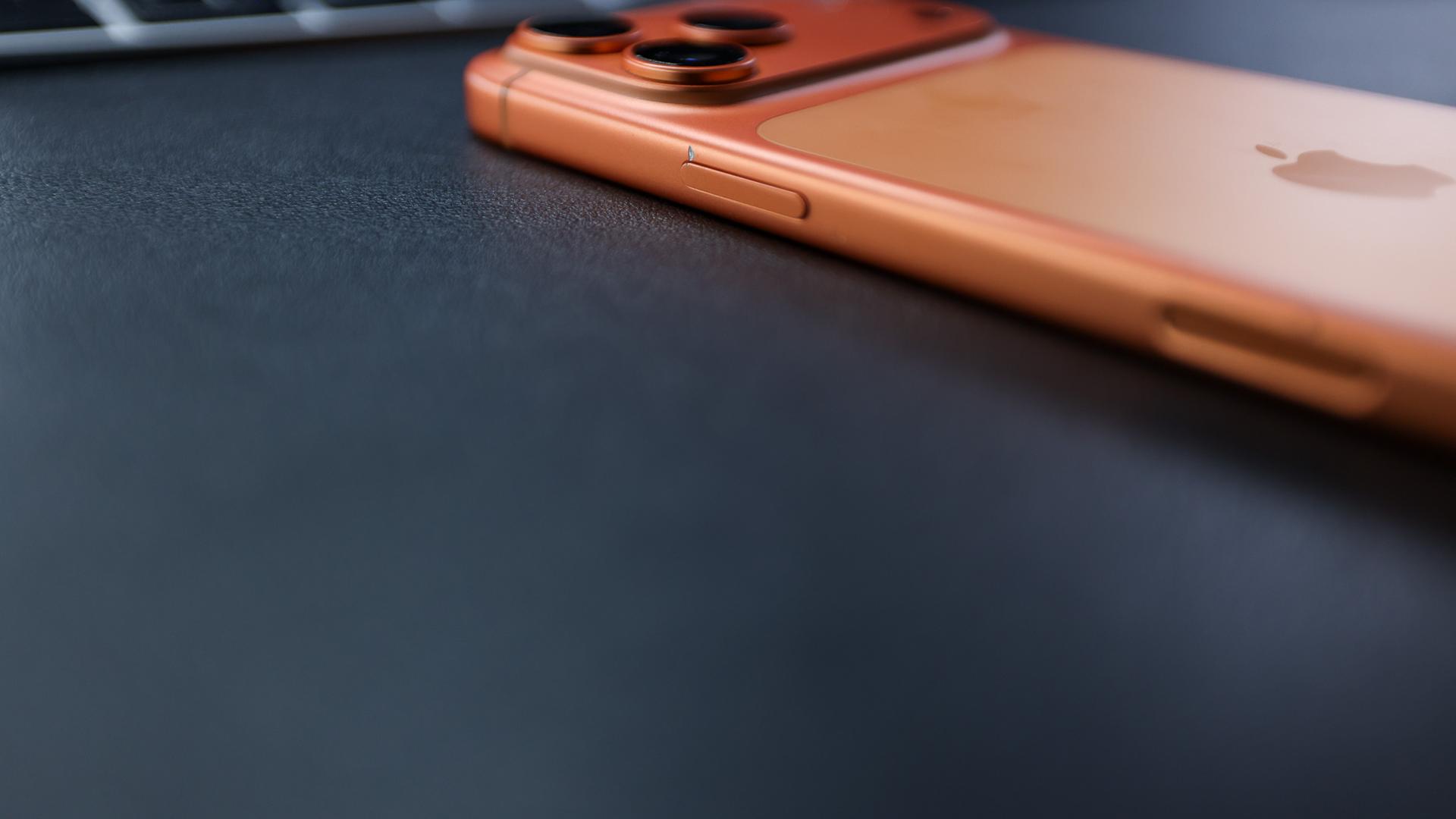 Small ding above the action button on the right side frame — visible in close-ups.