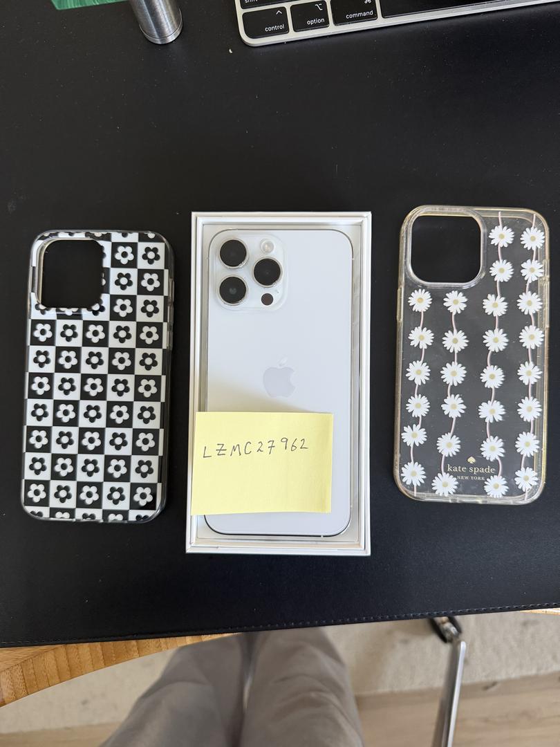 - 2 aftermarket cases included (cases are NOT in mint condition). One is a Kate Spade New York case, and one is a clear mag safe case. While completely functional, both cases show wear and tear but the phone is perfect.