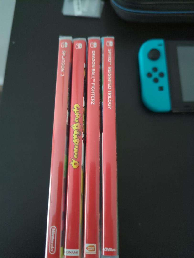 Games included are Splatoon 2 (sealed), Spyro Reignited Trilogy, Dragon Ball Fighter Z, Super Bomberman R