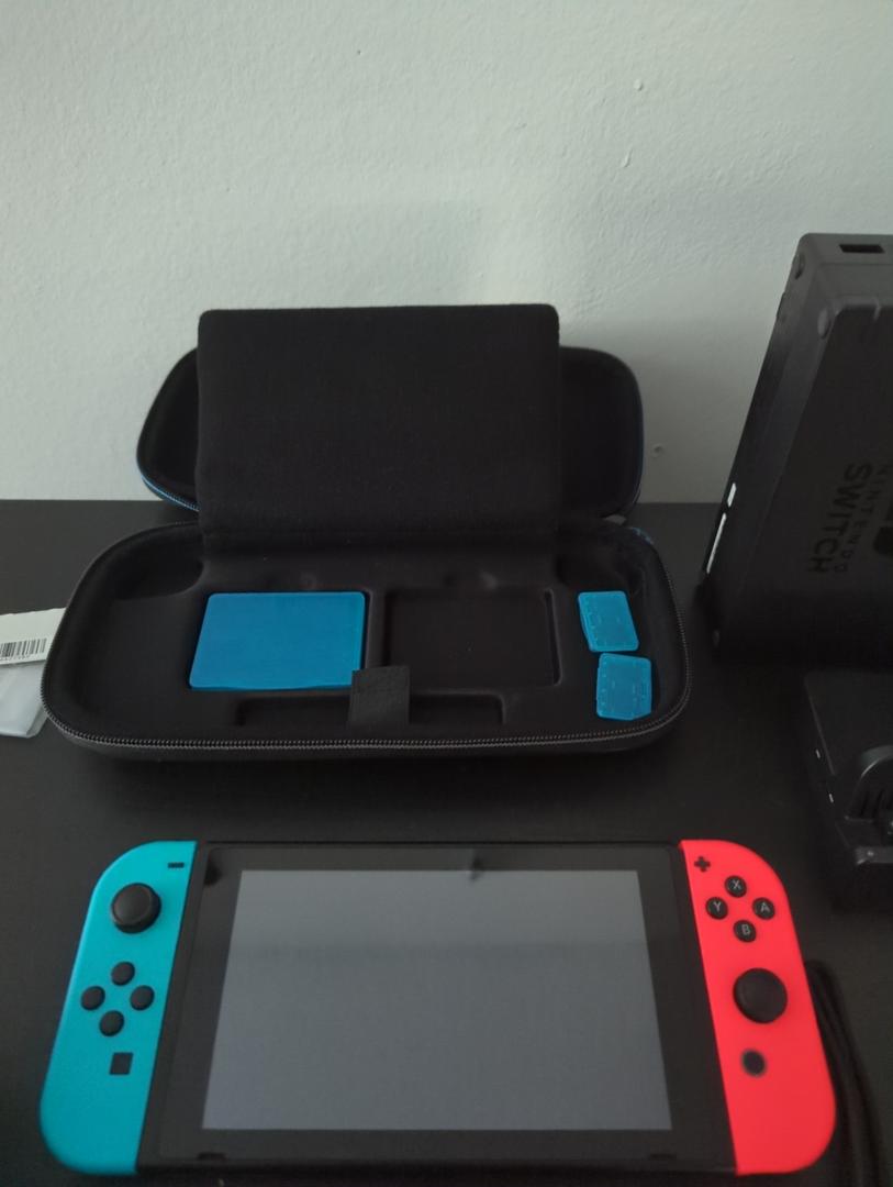 Switch near mint condition, one scuff mark in left controller, hairline scratches near charging port. Original dock included and unmodified, bought second dock to transfer PCB to a smaller dock. Original chargers and HDMI cables. No repairs or teardowns.