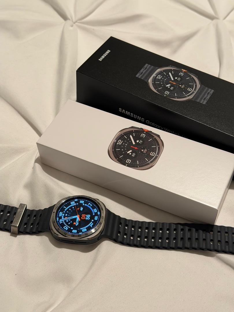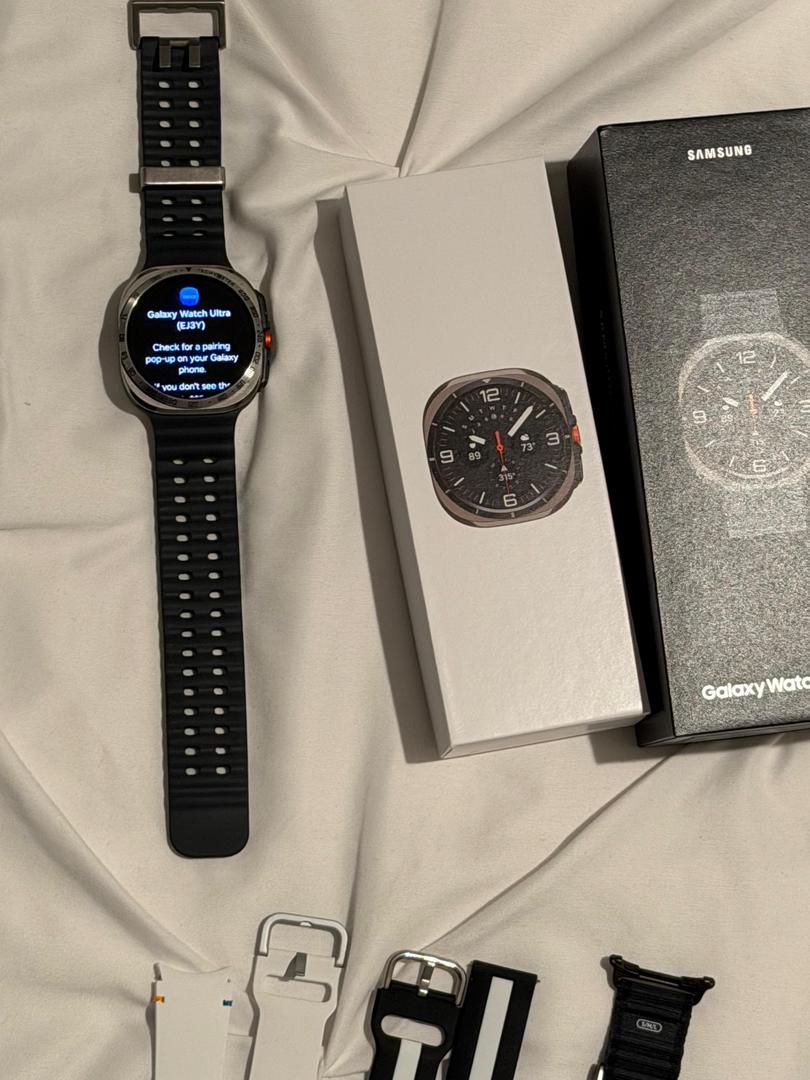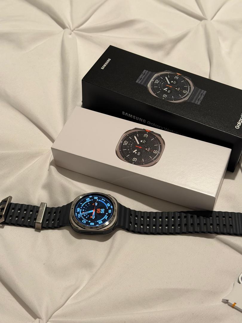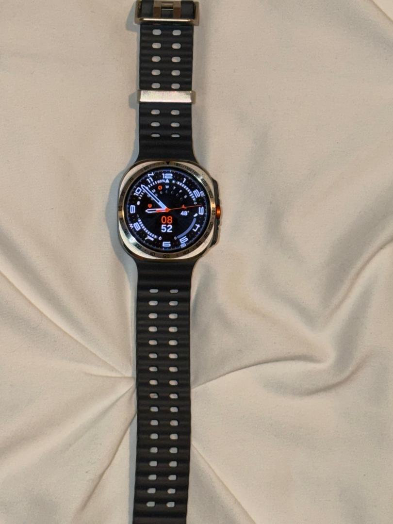 Selling my used Samsung Galaxy Watch Ultra (47mm, Bluetooth model) in Gray. I took really good care of it. The watch functions perfectly. The titanium body has some minor cosmetic scratches from normal use. The screen itself is in perfect condition.