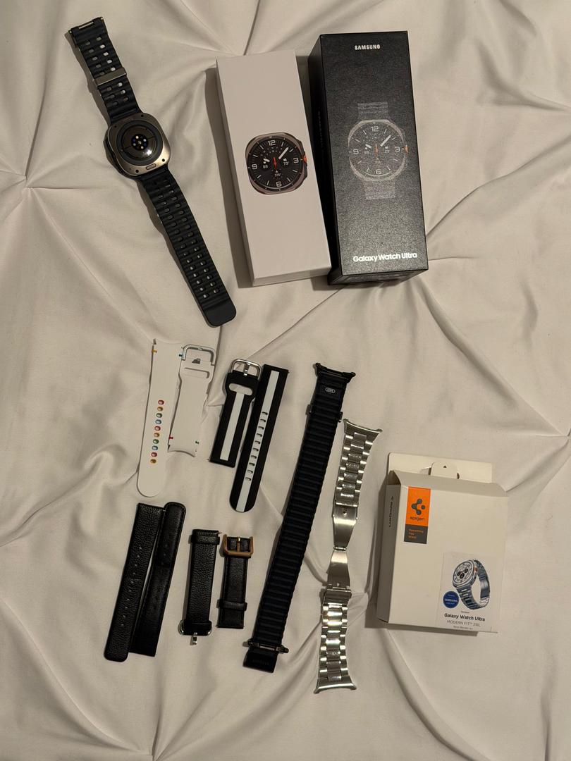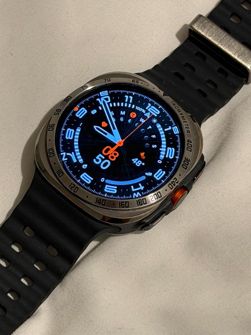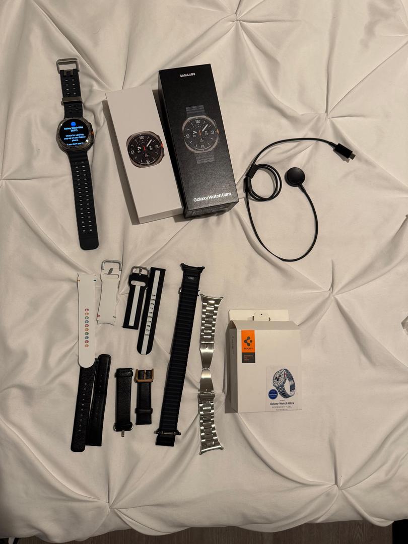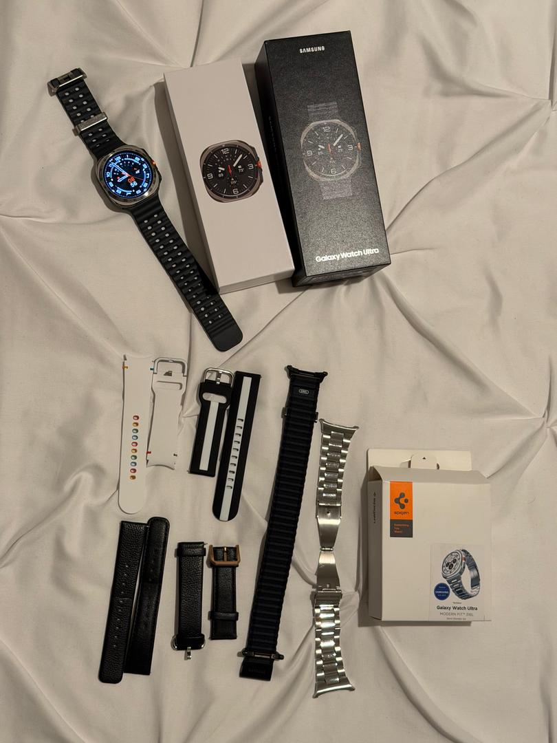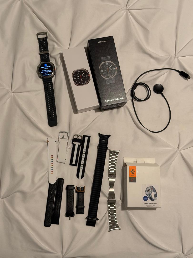 Selling my used Samsung Galaxy Watch Ultra (47mm, Bluetooth model) in Gray. I took really good care of it. The watch functions perfectly. The titanium body has some minor cosmetic scratches from normal use. The screen itself is in perfect condition.