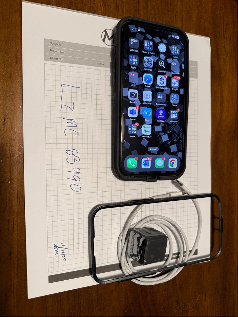 iPhone 15 Pro Max in Great Condition for sale. Device was a daily driver for 1 year and has been a backup since the 16 Pro Max was released. Listing includes the device, any tech armor screen protectors I have left as well as the otter box case shown in photos. Will also include an Apple USB C to C cable and Anker wall plug.