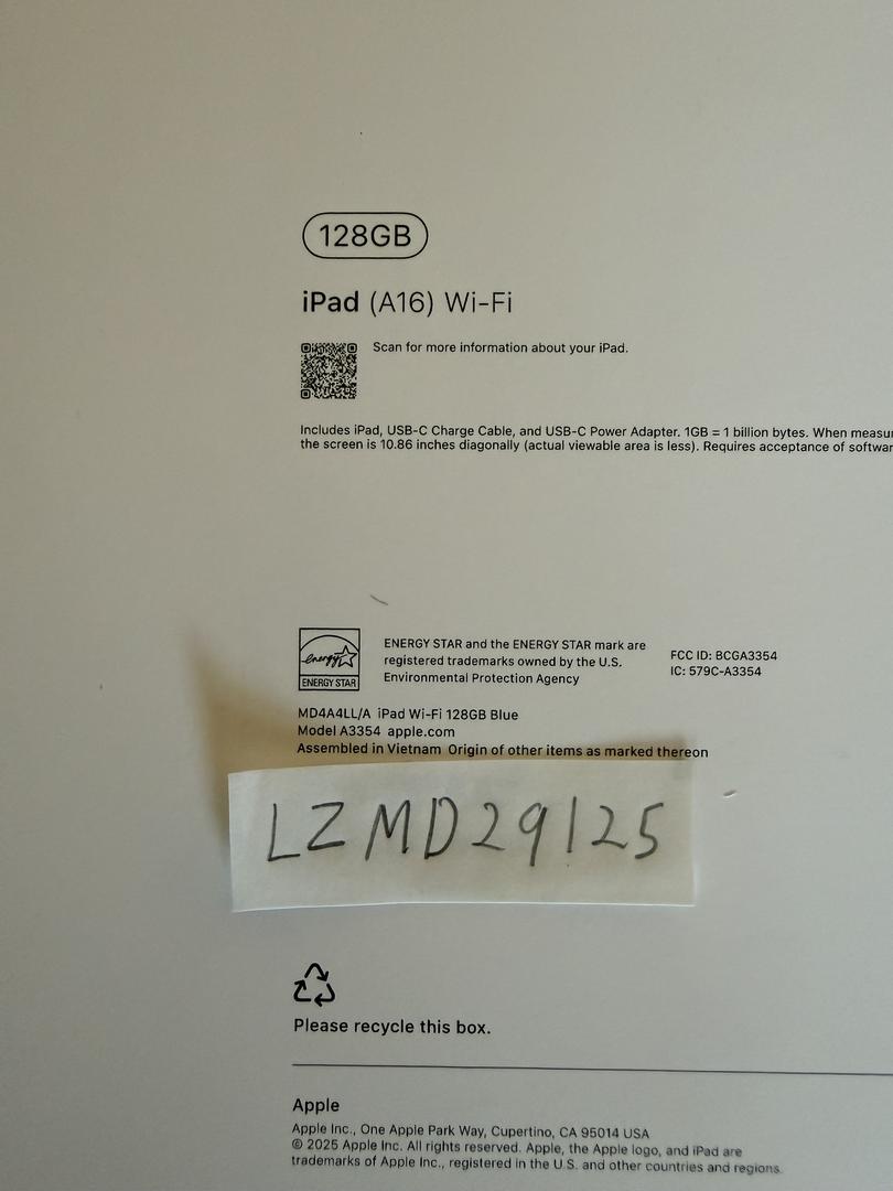 Up for sale is a Brand New Sealed Apple iPad A16, 128GB, Blue WiFi Model. Ships same day as payment is made!!