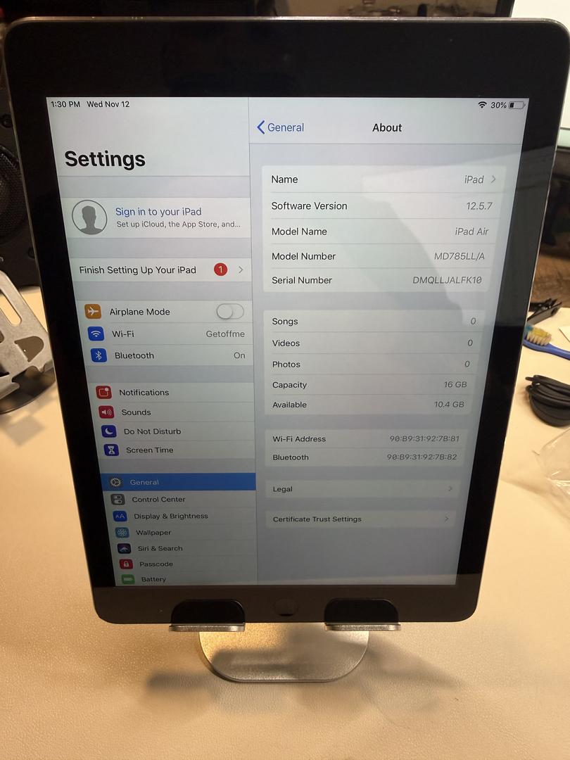 Excellent Apple iPad Air (1st Gen) A1474 16 GB, Wi-Fi , 6294 Wi-Fi 8562