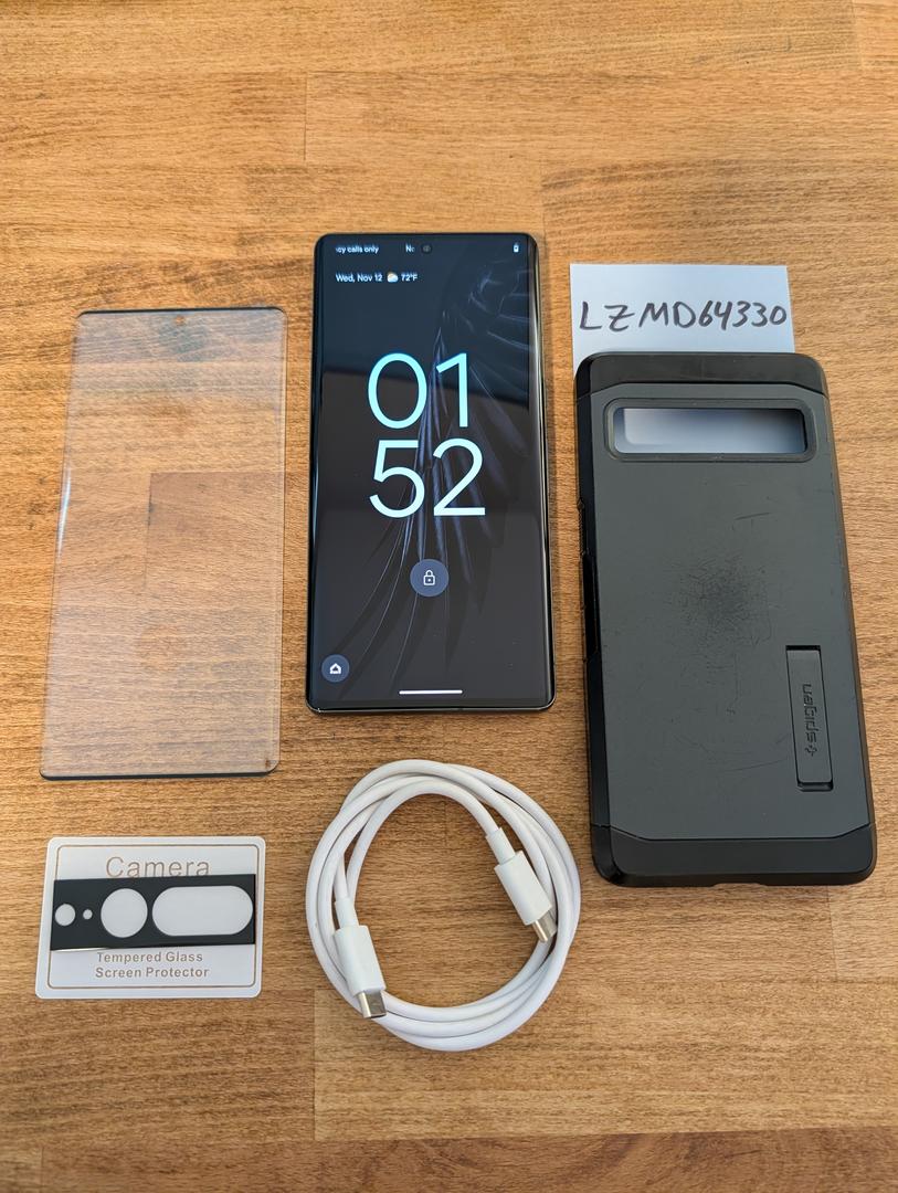 Includes: Google Pixel 7 Pro 128GB smartphone that was originally used on T-Mobile and has been carrier unlocked, original USB-C to USB-C cable, and free tempered glass screen protector and camera protector. Also includes free Spigen tough case with kickstand but the case has scratches and obvious signs of wear.