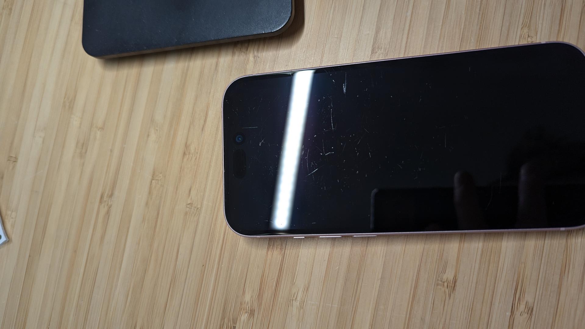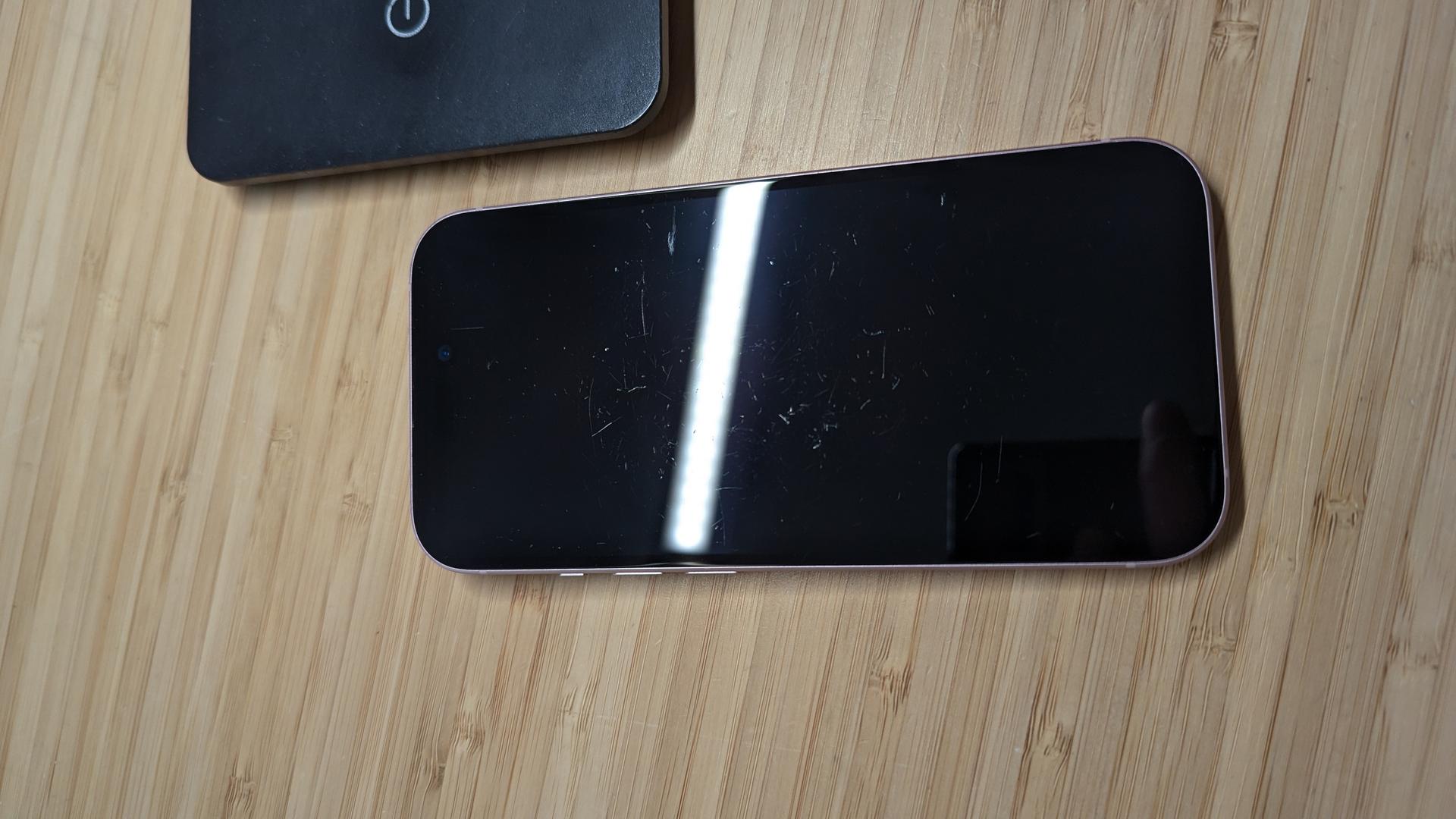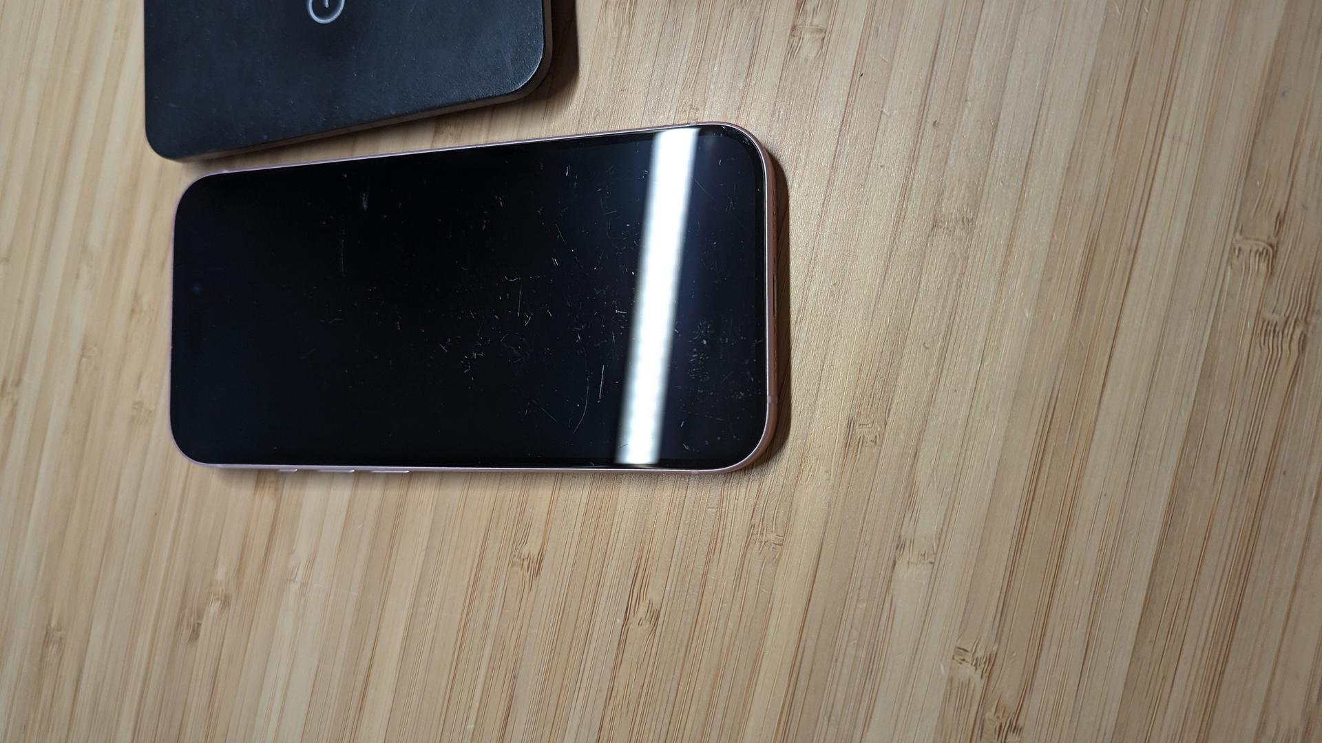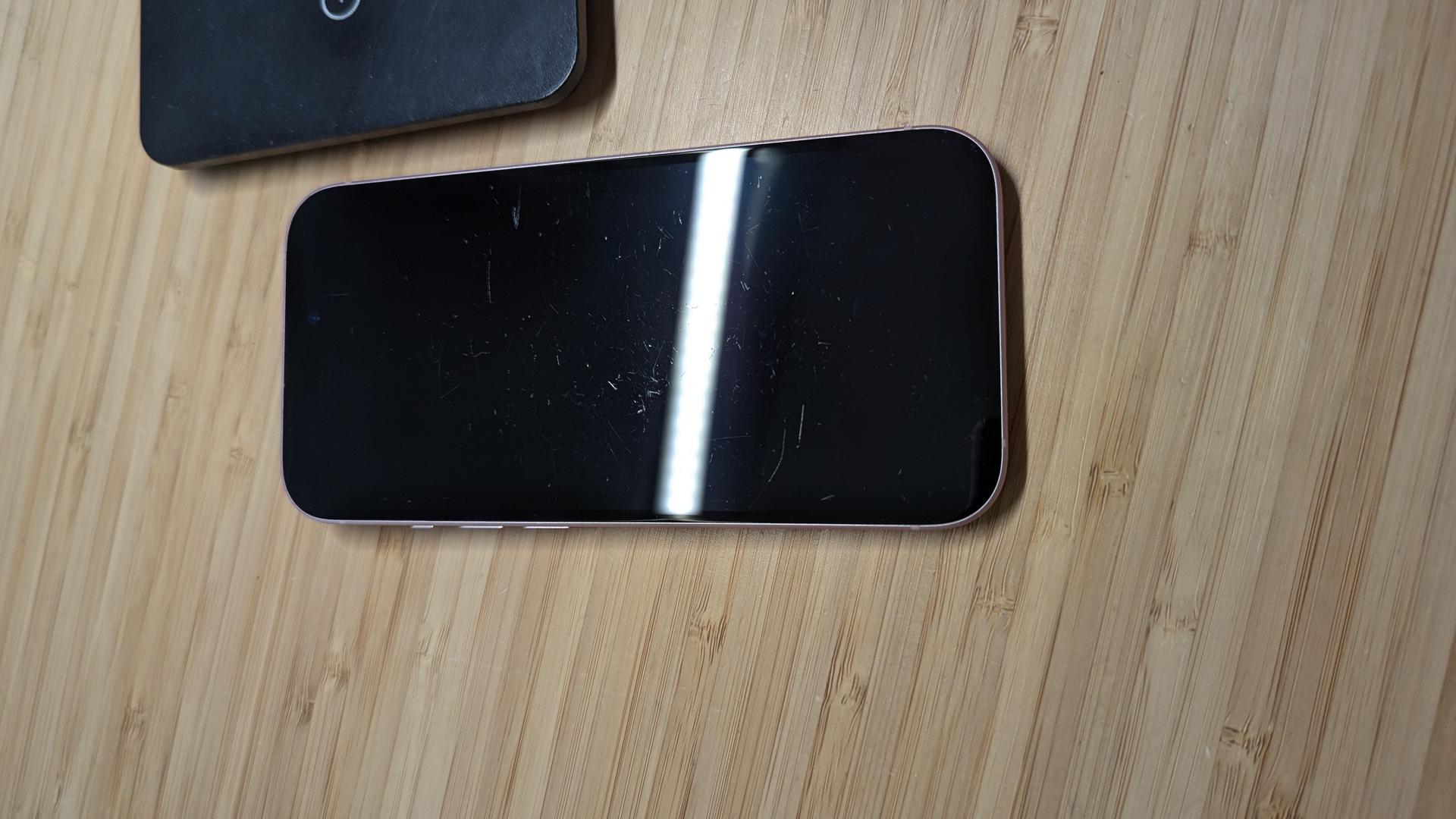This device in in FAIR with noticeable scratches on the front glass. There is some noticeable wear on the frame and back. Please review the photos.