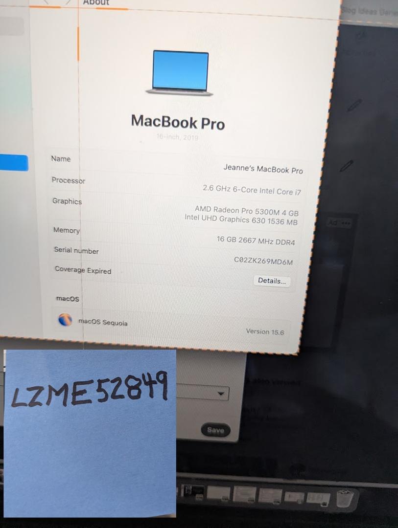 Macbook Pro 16inch 2019 i7/16GB/512GB SSD