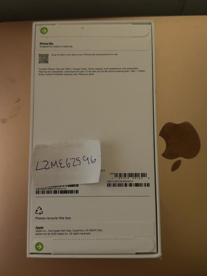 Carrier unlocked - Iphone 16e (128Gb) - New Sealed